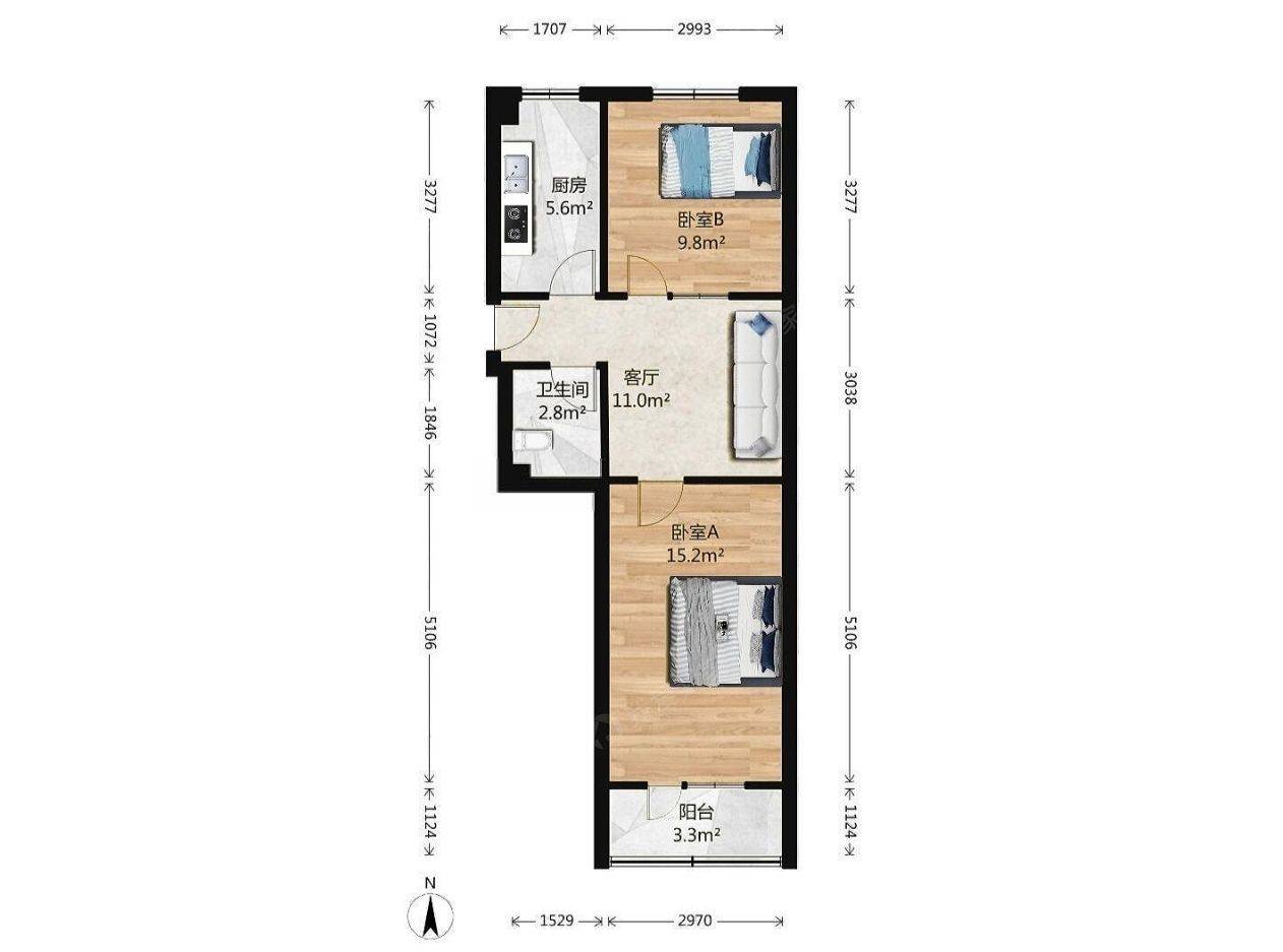 2 臥室/1 洗手間