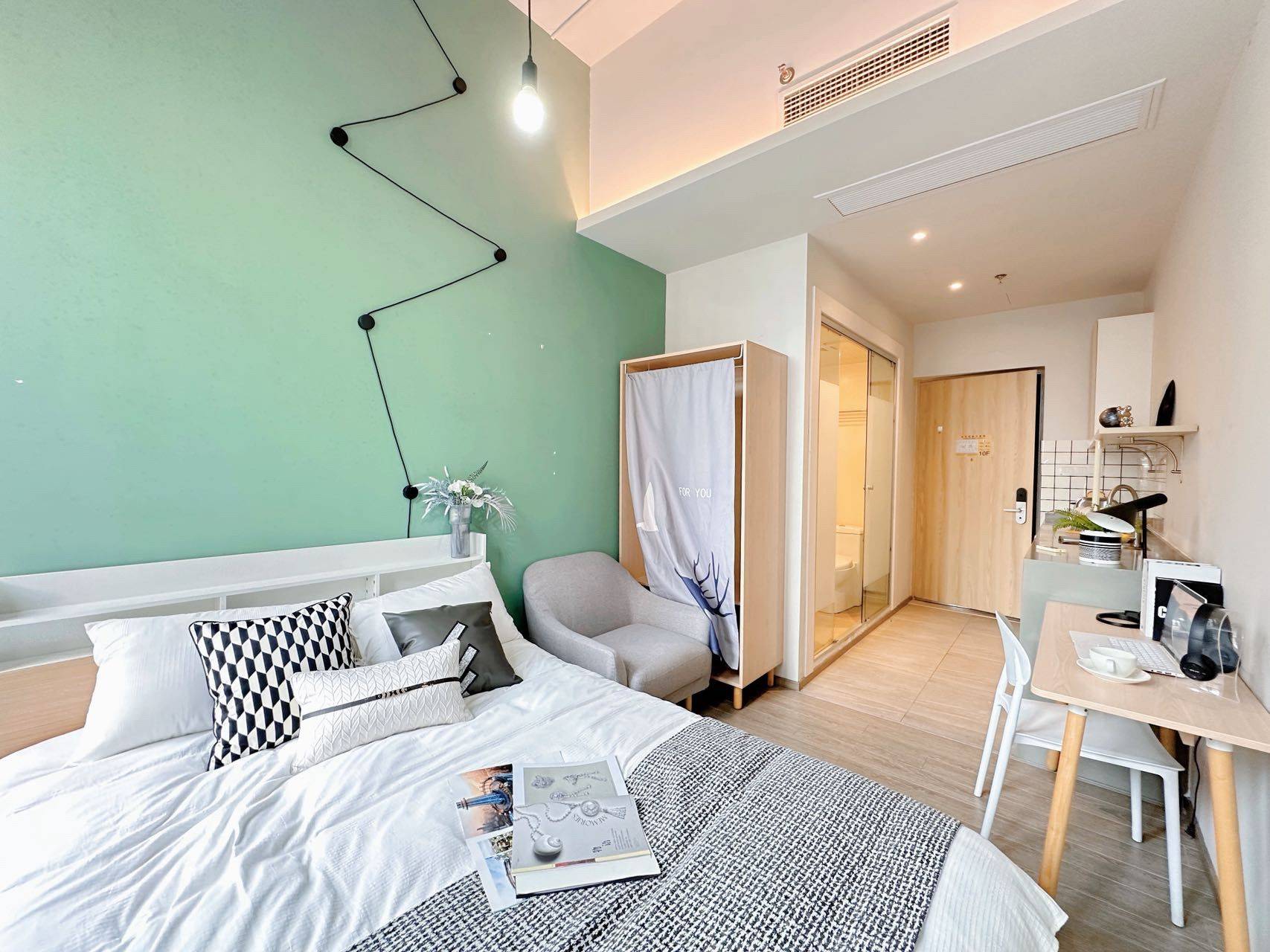3/8号线虹口足球场 整租独门独户,民水民电,配套齐全,配有健身房,楼下超市吃饭生活方便,一房一价,平层复式,一室一厅,两室都有,价格2000—10000,入住免费送一个月,管家安保24小时,欢迎咨询 价格真实,可视频看房; 安全密码锁.价格实惠.省心:公寓前台管家.权益有保障.舒心:精装修.房间内WiFi全覆盖.家具家电齐全我们的优势:1.无隐性费用2.宽带全覆盖3.宜家风格.环保材料装修,让您住的放心睡得舒心4,完善的报修,保洁,配套服务,解决您后顾之忧5,灵活的付款方式6,24免费上门维修小单间温馨如家,阳光充足,干净卫生,无线上网.真实图片