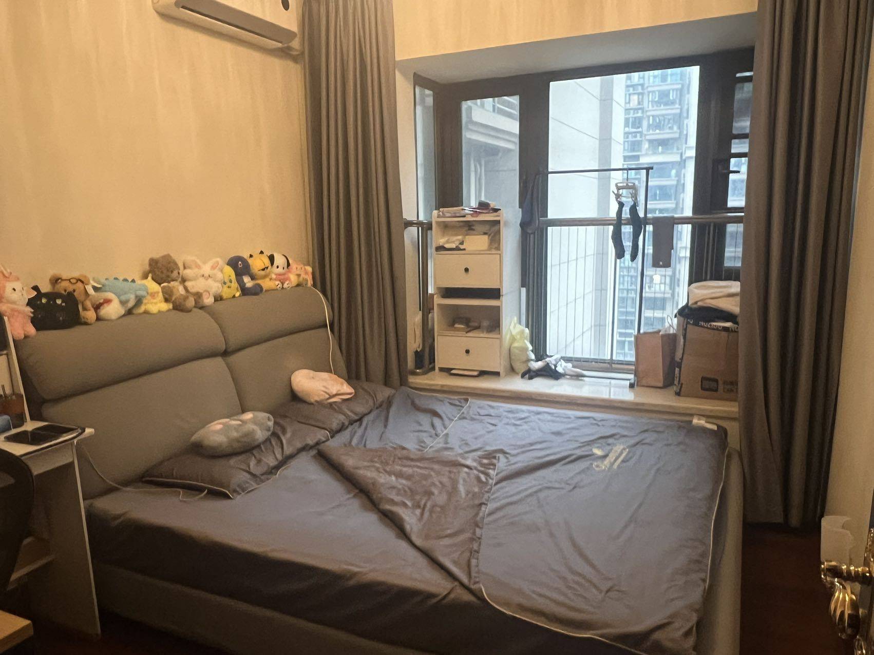 房子是个套三双卫,其中一个房间没有床,所以日常可以拿来当杂物间,可以共同使用,小区地下停车场,停车免费,位置在桂林西路恒大锦城,8号线桂林地铁站附近,欢迎随时看房,不接受养宠物的,睡眠较浅,1100一个月,物业本人承担,水电另算,押一付三
