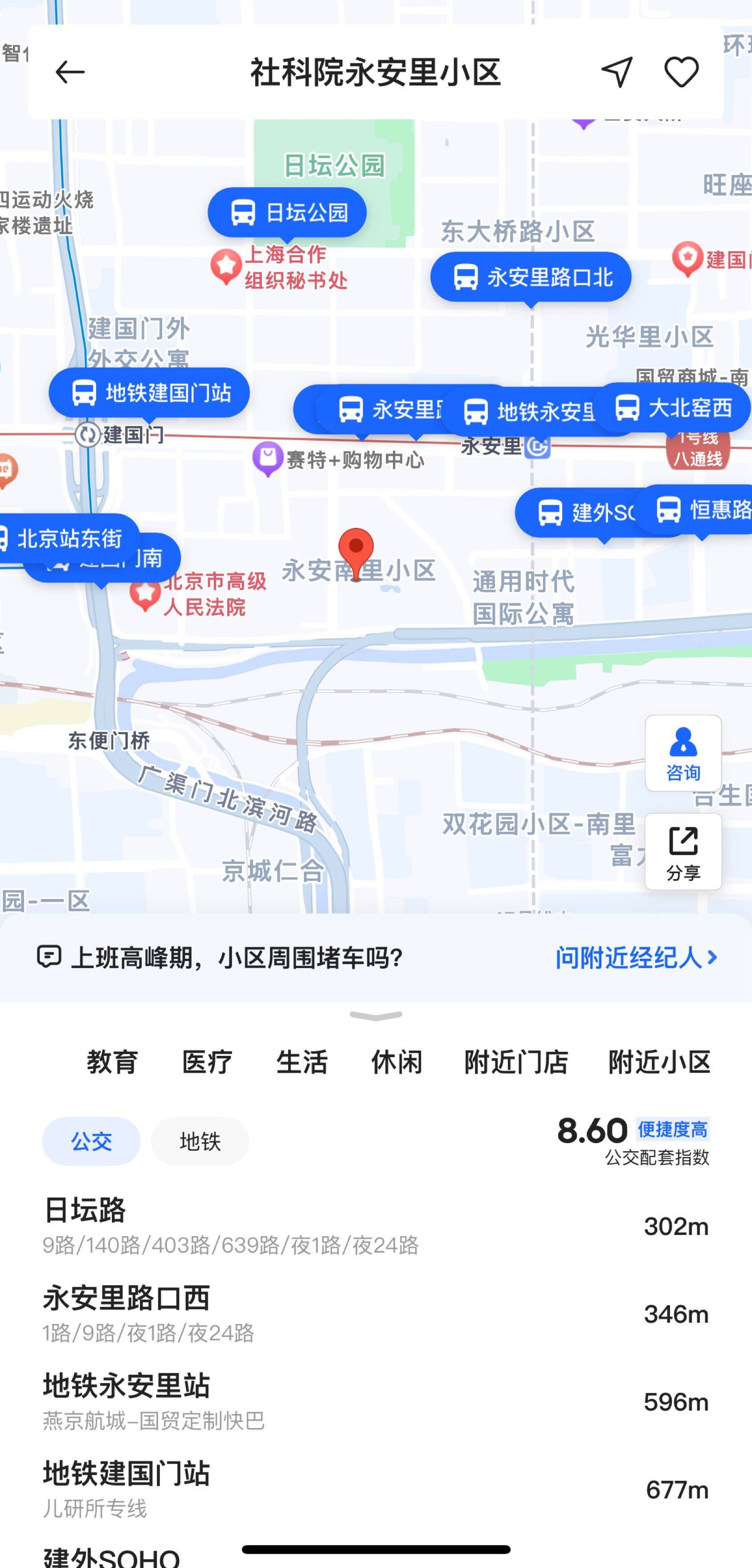寻1名室友 男女均可 地铁1号线 永安里站 2号线建国门站 建国门 朝外商圈 东二环豪华装修 【具体地址】建国南路永安南里10号楼,社科院宿舍区 【地铁站】距离 1号线 永安里站 步行10分钟 距离2号线建国门站 步行15分钟 【公交车站】日坛路 永安里路口西 地铁建国门站等 【房屋面积】整个房子是60平方米,二居室格局。一厨一卫,一大一小两个卧室。要出租的是小卧,十一平方米左右,朝阳正南 【家具设备】房子是房东第一次出租,法式风格,楼层3层。卧室都是朝南的,阳光正好。豪华装修,地面是品牌实木地板,全屋定制床柜一体,铺设地暖,配置飞利浦空气净化器,小米智能空调,储物面积超多,暖气早来晚停,生活便利。医疗资源丰富,附近有建国门商圈,双井商圈,朝外商圈等,非常适合附近上班的人。 对外出租的是小卧室,1.5米床,配有床垫 【租金和付款方式】3600元/月,押一付三 【其他费用】无,房租包含:水、电、煤气、网络(网络是联通千兆,全屋覆盖,卧室内有单独网关) 【可入住时间】即日起,两年一签。 【特殊要求】限一个人,喜欢安静,整洁的。基本不做饭,没任何厨具最佳。有正常收入来源即可。男女均可。 【其他说明】一共两个卧室。小卧室住1人。大卧室住1个人。要出租是小卧室。 随时约看房子,没有中介费! 该单间, 建国南路永安南里10号楼,社科院宿舍区 有意,。 谢绝中介。