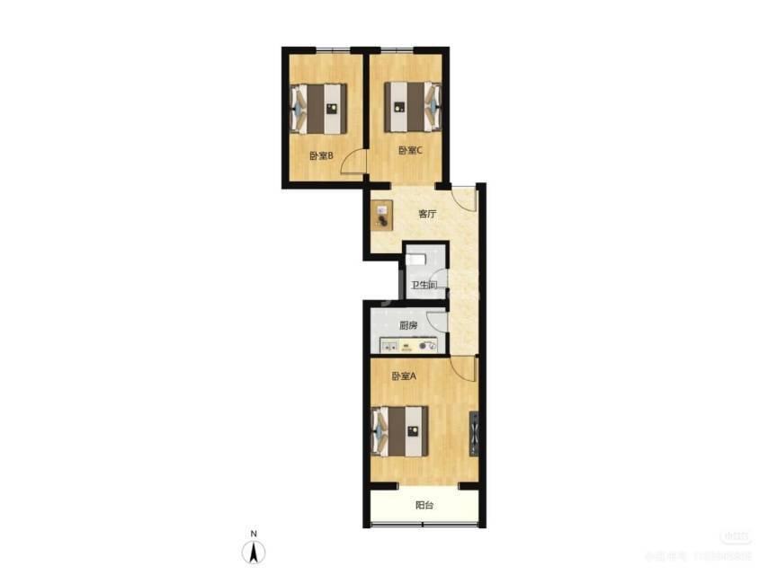 面积户型:81㎡ 南北通透正宗小三居,三室一厅一厨一卫(其实算2卫)全明户型,阳光好!