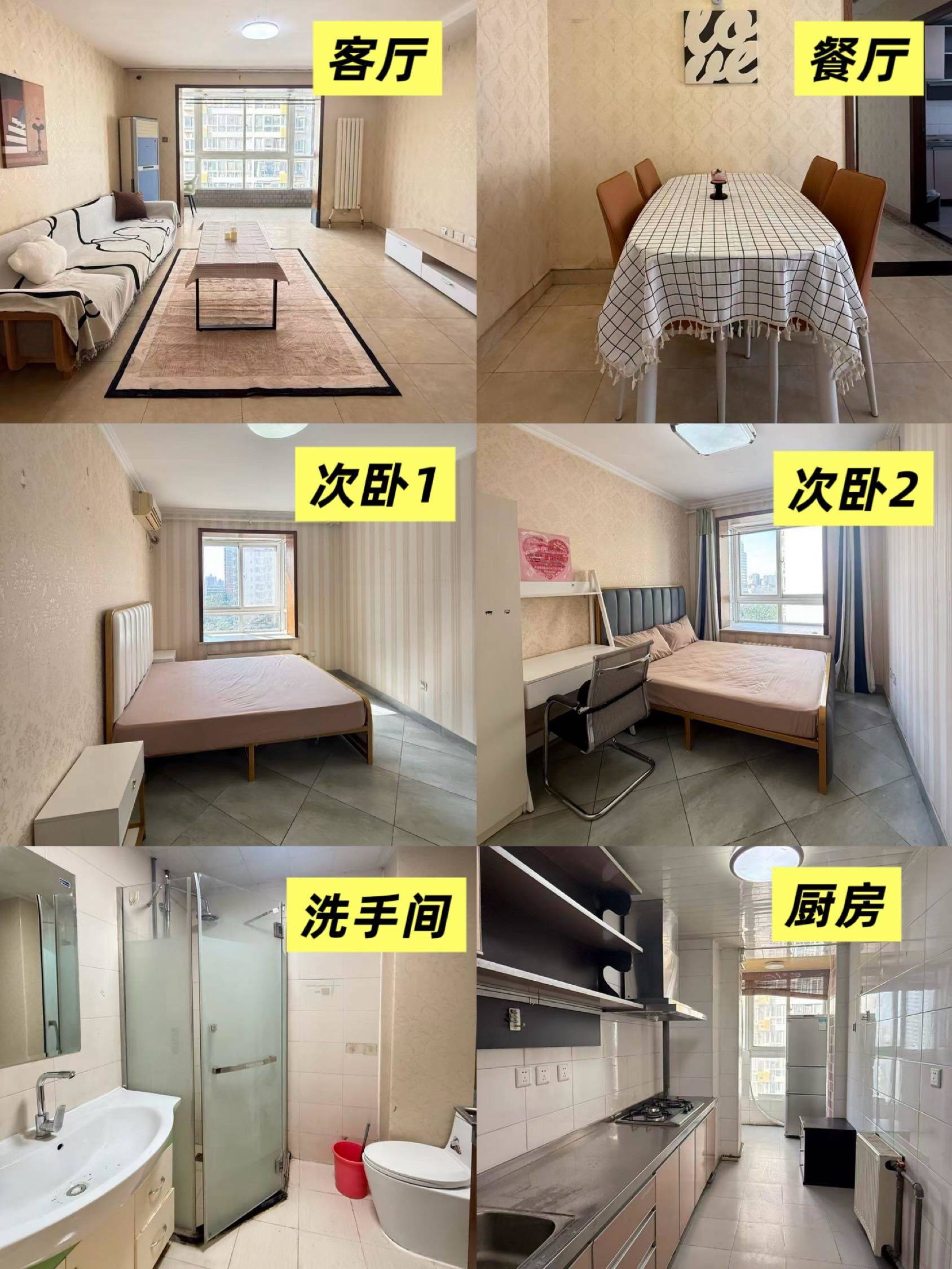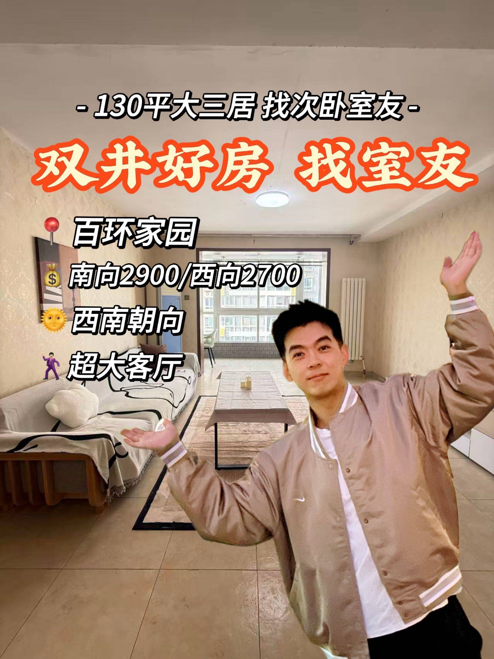 ►关于家:贝壳整租的130平三居室,找2个次卧室友。 ►房租:3200/2900(水电气网AA,无其他费用) ►房间:次卧1朝南12平,次卧2朝西10平 ►关于小区:百环家园13号楼,离双井地铁站步行12分钟,临近东三环周边超市/健身房/餐厅/大医院都很近。