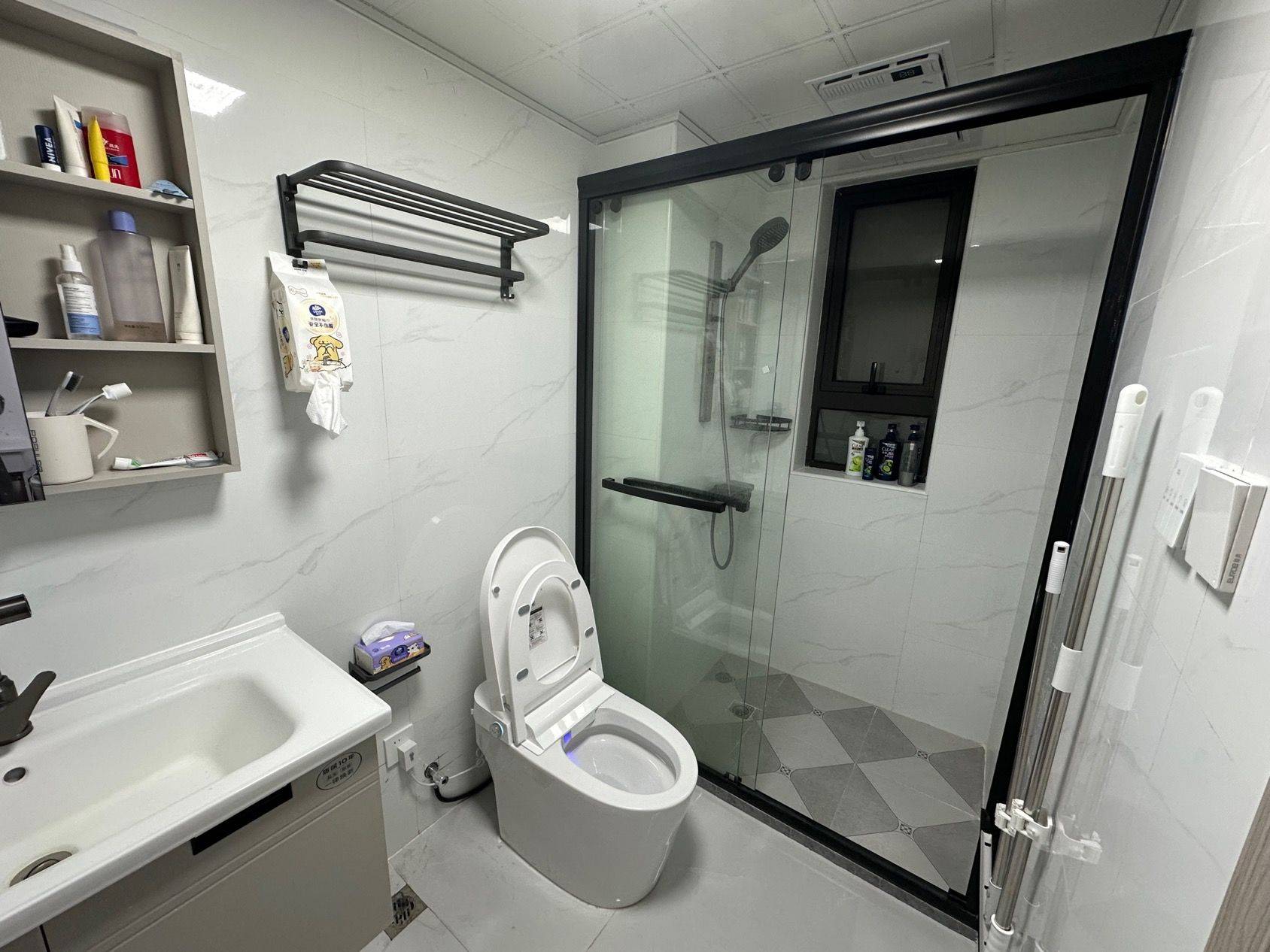 一室一卫 楼层和室内装修很好 本人因为个人原因转租 合同还有六个月 房东人特别好 水电费不贵 都是民用 入户密码锁 自带千兆wifi 电动马桶 电动晾衣架 客厅和卧室都有空调 有燃气和冰箱可自己做饭 新小区 环境好 安保负责 离地铁站通勤五分钟 周围娱乐购物有商场 南汇大学城 离菜市场也很近 合适可以私聊我😊
