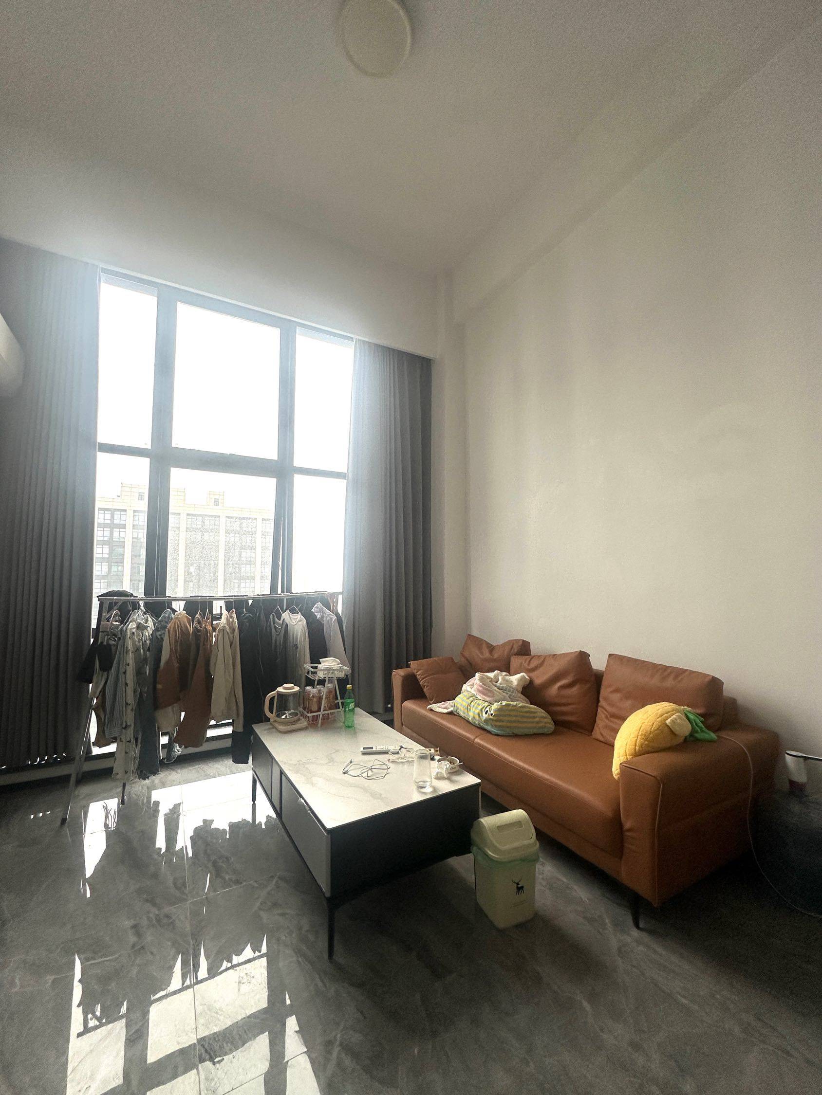 坐标杭州临平核心区,步行到临平万达,楼下就是便利店和生鲜超市,日常采购不用愁。 房子是45㎡精装一居loft公寓,朝南户型,客厅带大的落地飘窗,家具家电全配齐,空调、洗衣机、冰箱,租金1861元/月,押一付一
