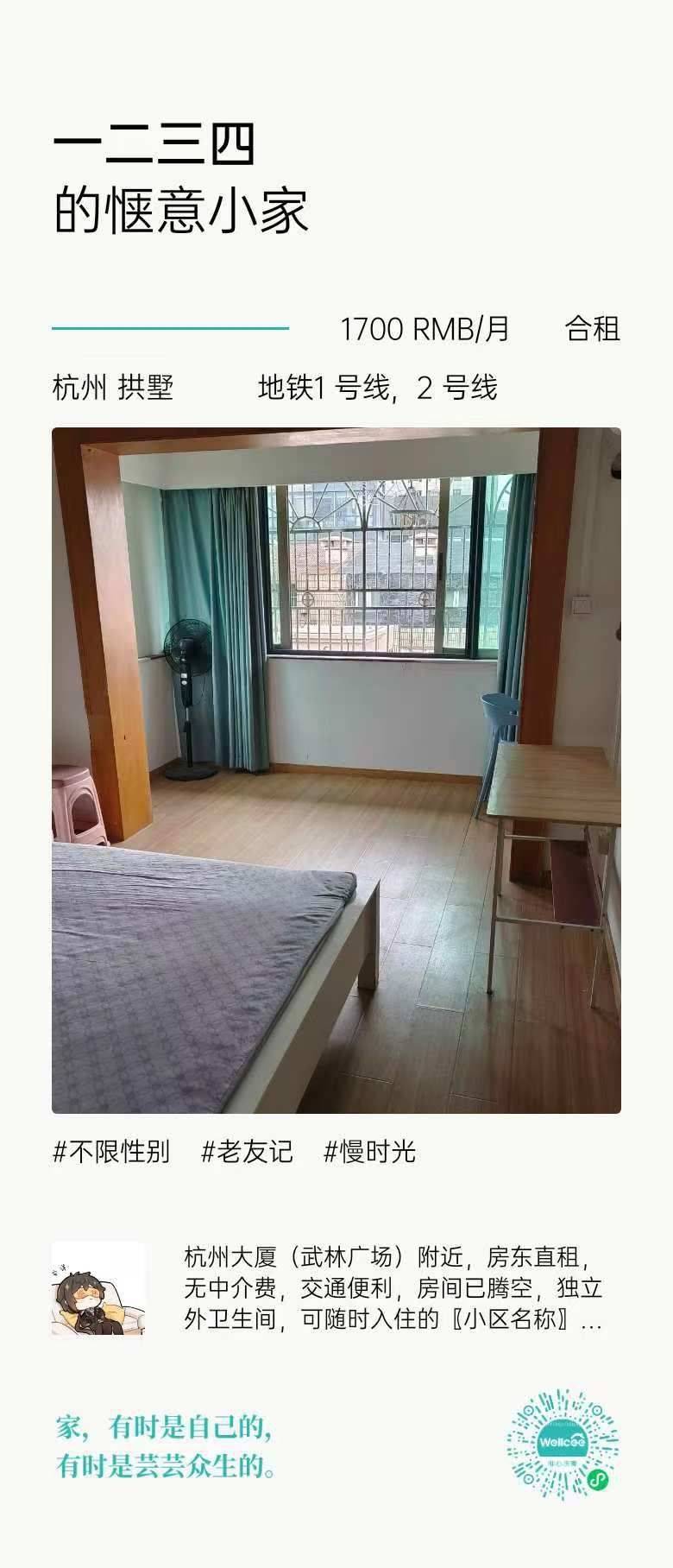 武林公寓,(已搬走随时入住)近地铁。地理位置优越。个人转租,工作原因离开杭州。水费免电费6毛钱一度。个人补贴200搬家费 4室4卫 套外独卫