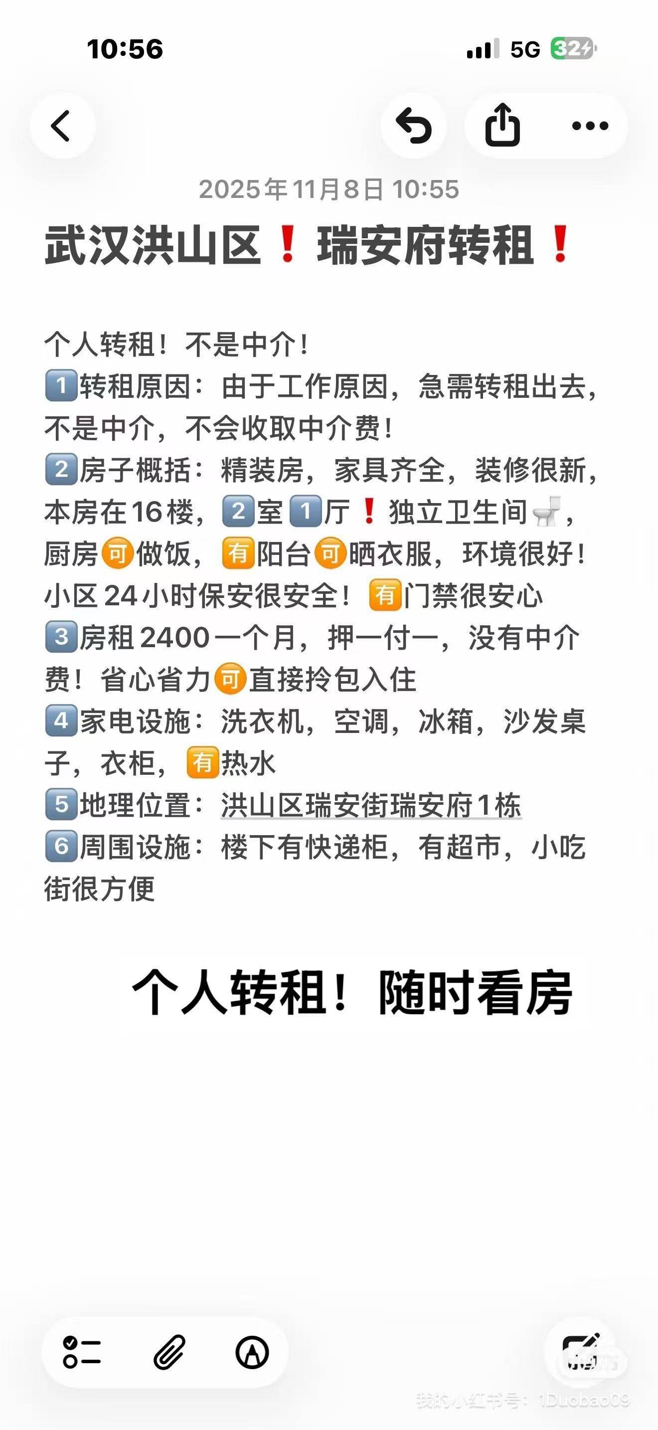 Rent : 2400RMB/M