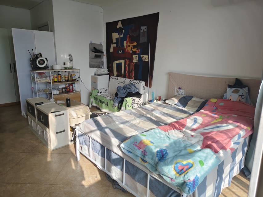 主卧独卫,可住1-2人,南向带阳台,采光很好,近一号线双桥地铁站,出门就有公交,有电梯,楼层高但非顶楼,人少安静,小区有门禁,房间有密码锁,安全,小区门口有超市,便利蜂,附近有双桥万达,室友存在感低,平时见不到面,也不会打扰到,可以当做是独居,民水民电,房东直签,12月1号可入住,租期剩余7个月,到期可续租,免维修费