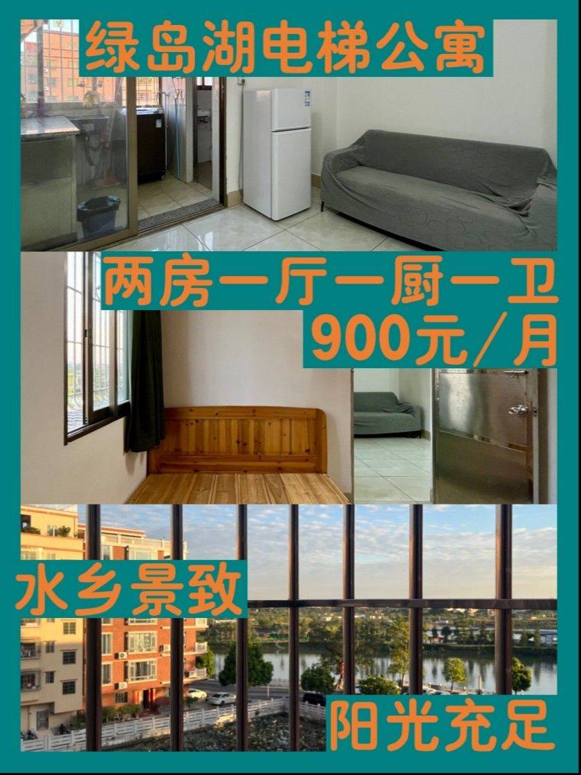 绿岛湖两房一厅电梯公寓(东向阳光充足版 !不用客套打招呼! !不用问在不在! !能看到就是还能租! 很推荐的一套。房子位于四楼,厨房、卧室一窗户面向池塘水乡风景,阳光充足通风良好,讲真可以剩不少电费。 房间详情如下: • 租金: 900元/月(押一付一无中介费) • 租期:一年及以上,不短租 • 水电杂费:水5.5元/吨 电1.1元/度 垃圾费10元/月 网费10元/月 • 位置:绿岛湖地铁站B出口步行10分钟(地图app搜「成鉴大厦」,就在旁边) • 家具家电:空调(两台)、洗衣机、冰箱、热水器、抽油烟机、1.5米床(两张)、衣柜(两个)、沙发、餐桌、椅子(两张),每户新入住均配全新床垫(非二手,住满半年免费送,未满半年退租则需补缴198元/张) • 周边:步行10分钟至绿岛湖地铁口,步行7分钟至菜市场,楼下50米左右有收费停车位(村里收费350元/月/车位) • 其他:公寓楼位于路边,不用走内巷,楼内公共区域及大楼门口均设有摄像头,独居友好;周边配套方便但又不会过于紧靠市场商圈晚上会太吵闹;房间格局方正实用,家电家具装修虽不豪华但拎包入住完全没问题(纯狱风广东出租屋该有的丑门丑窗都有 爆改空间巨大),适合瓷海、智慧新城、季华路上班人士/应届毕业生 合适可以提前约时间实地看房。