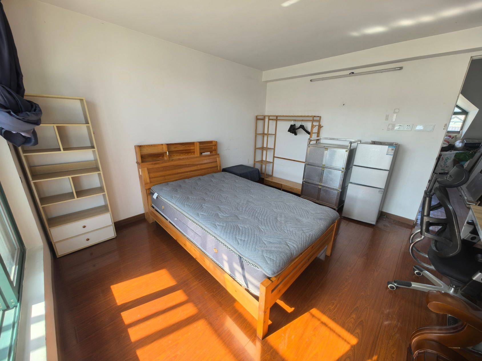预计四月中旬可以入住,房间朝南采光好,还有个阳台,洗衣机,浴室是公用的,三户合租,水一个月30,电一块钱一度,靠着13号线和7号线地铁,很方便