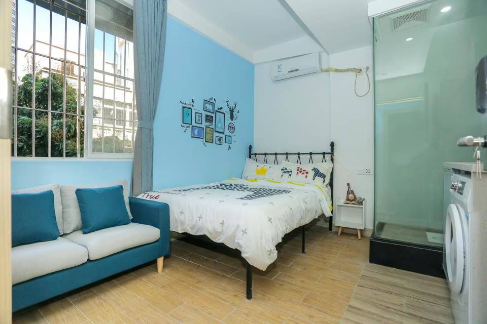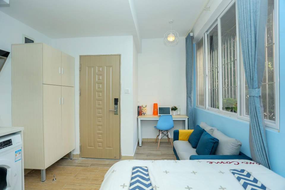 早上有阳光直接到床尾,大新地铁站超近。原价是2350,砍价砍下来的,租约到明年六月。步梯六楼,7楼是天台方便晒被单。还没搬走(可随时商量时间),有个人物品就拿公寓管家的图发了。房租2200,管理费50,电0.7/度,水5元/吨,网费代缴公寓收99(我没交,自己拉的)