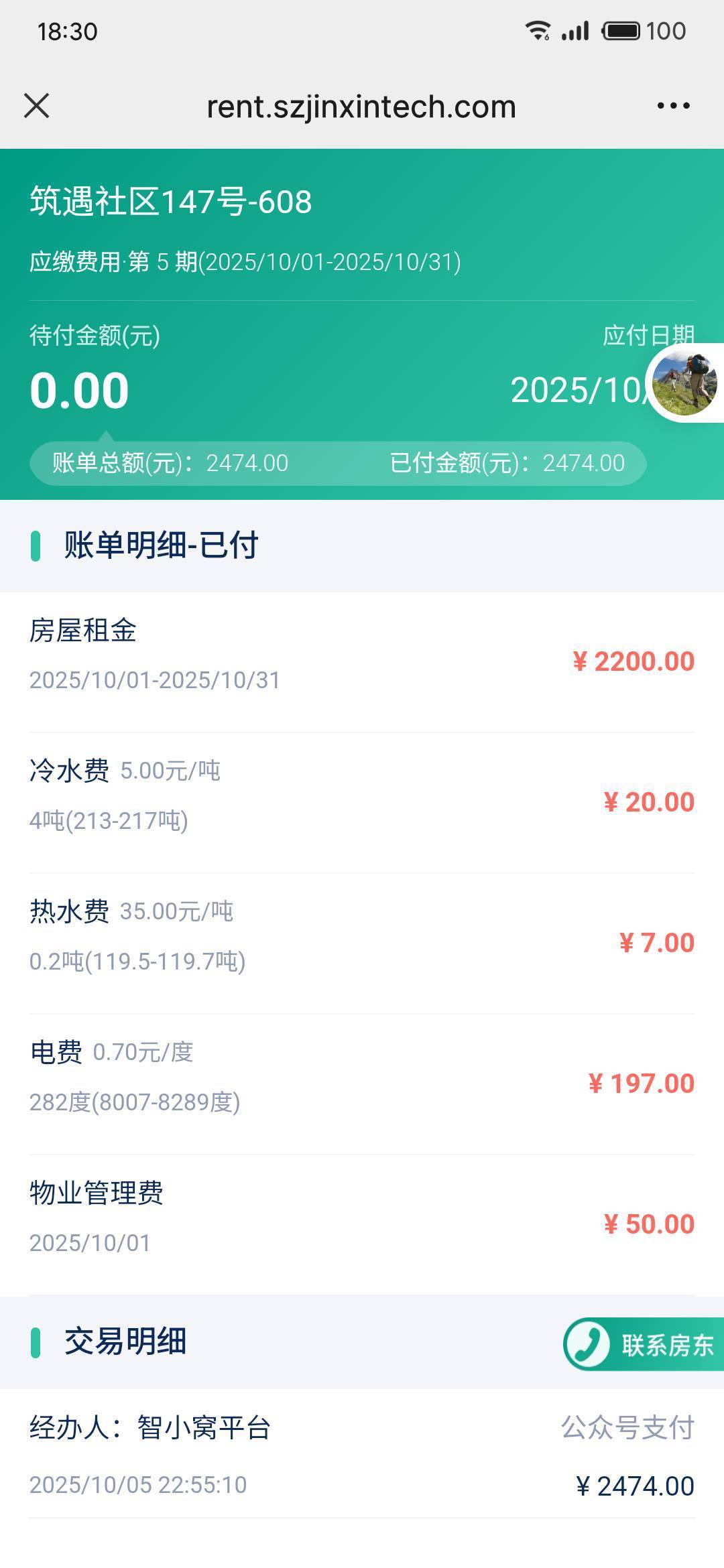 Rent : 2200RMB/M
