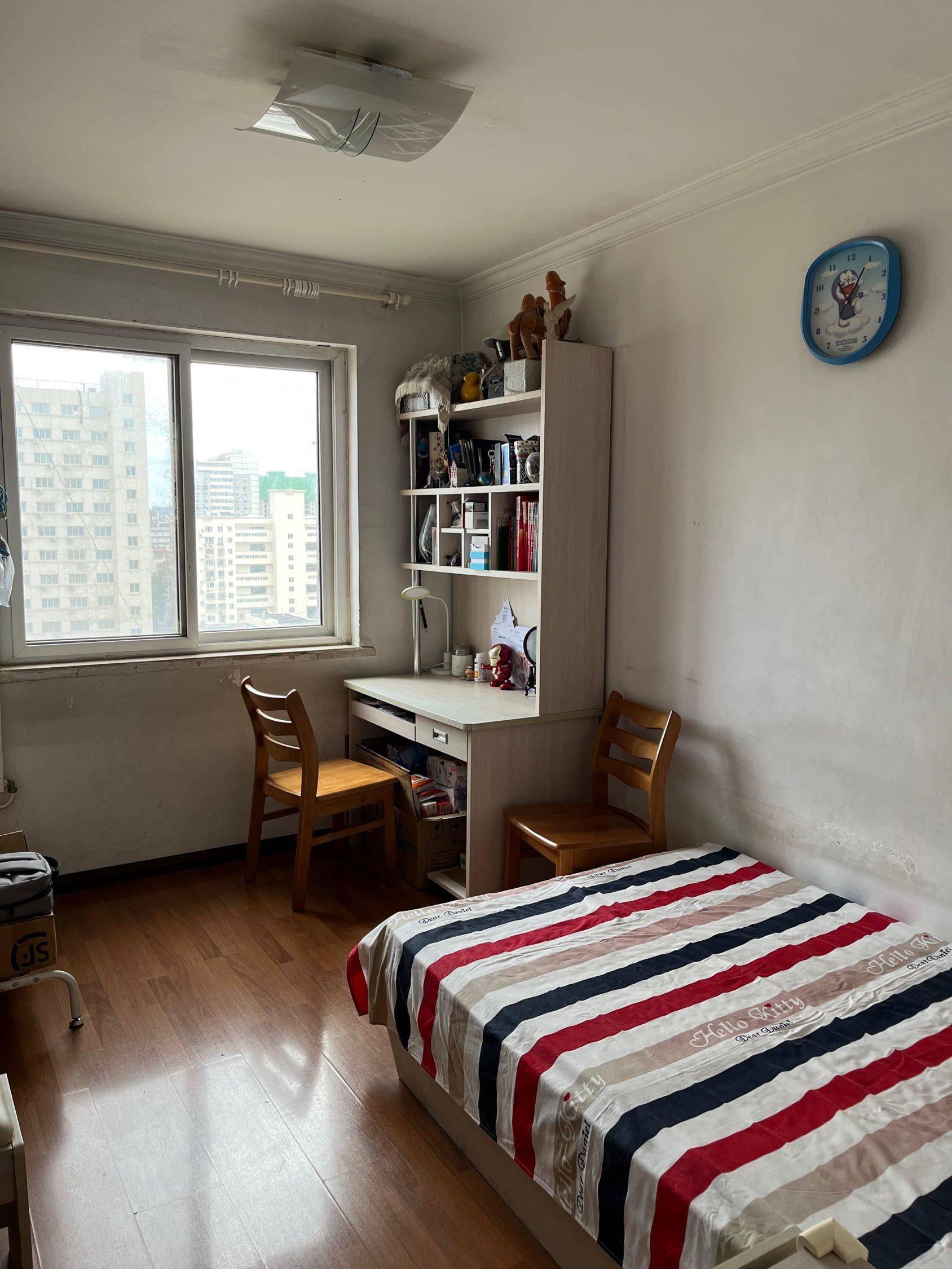 两间房子都是朝南的,光线充足,阳光明媚,暖气自上而下,房子有电梯,其中一间:主卧16平米,5米阳台,阳台外加保温层,暖和采光好。次卧面积大空间方正,无浪费空间。另有壁橱:分为上下两层,里面有按灯。卫生间装修三年,总体干净、卫生。地面为防滑瓷砖凹凸型瓷砖,并且有防护网,适合一家三口居住。交通方便离积水潭一站地,配套设施齐全。