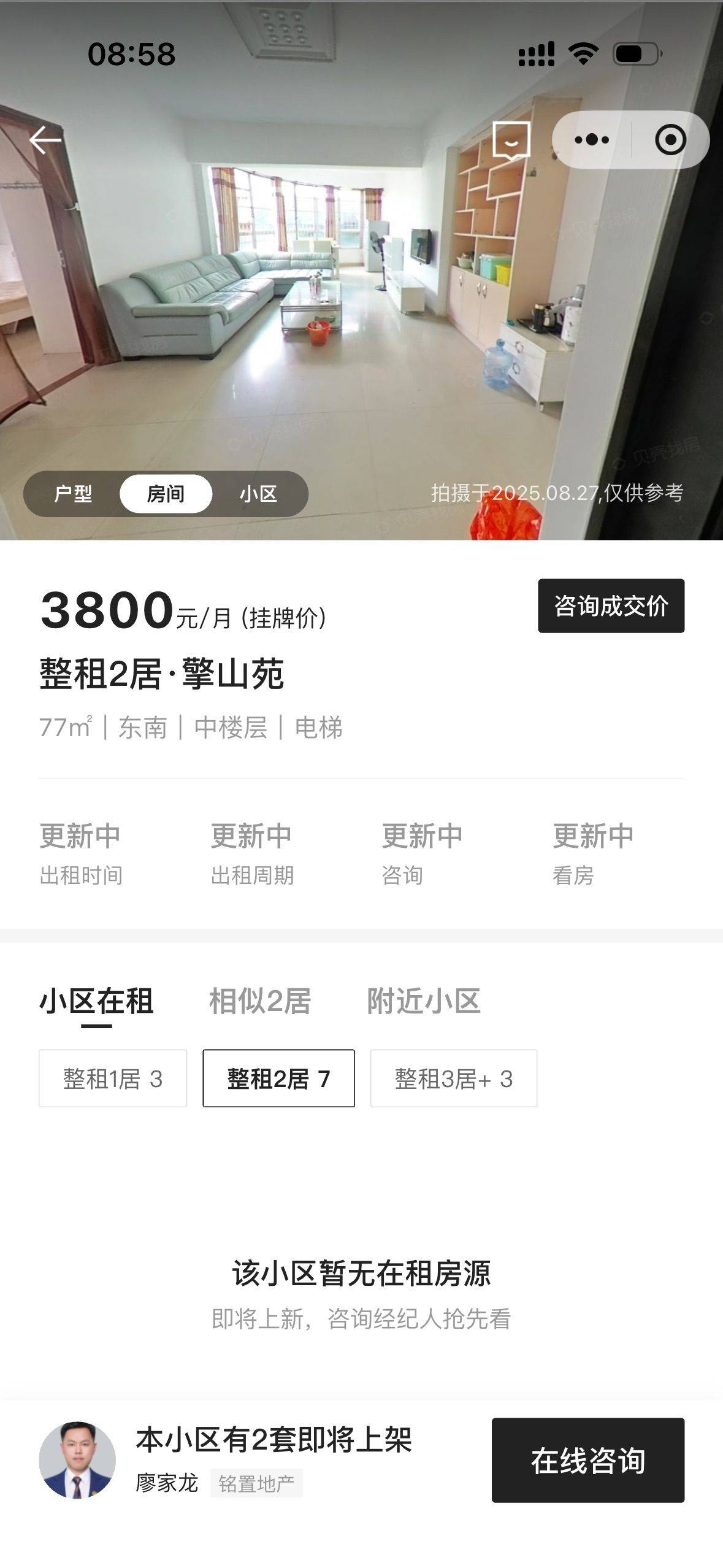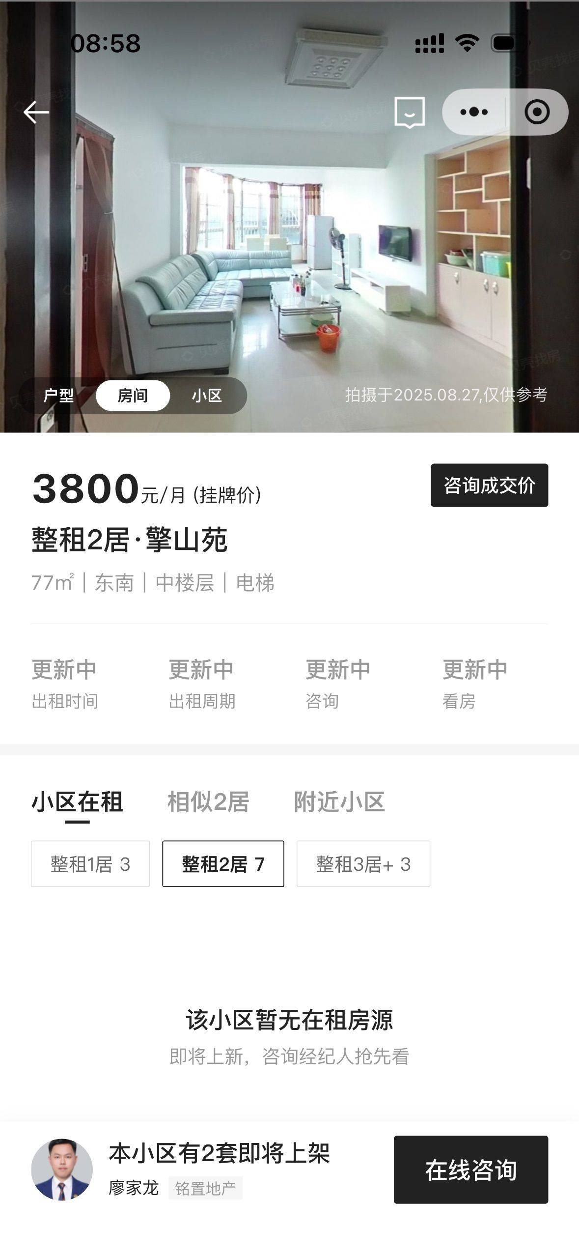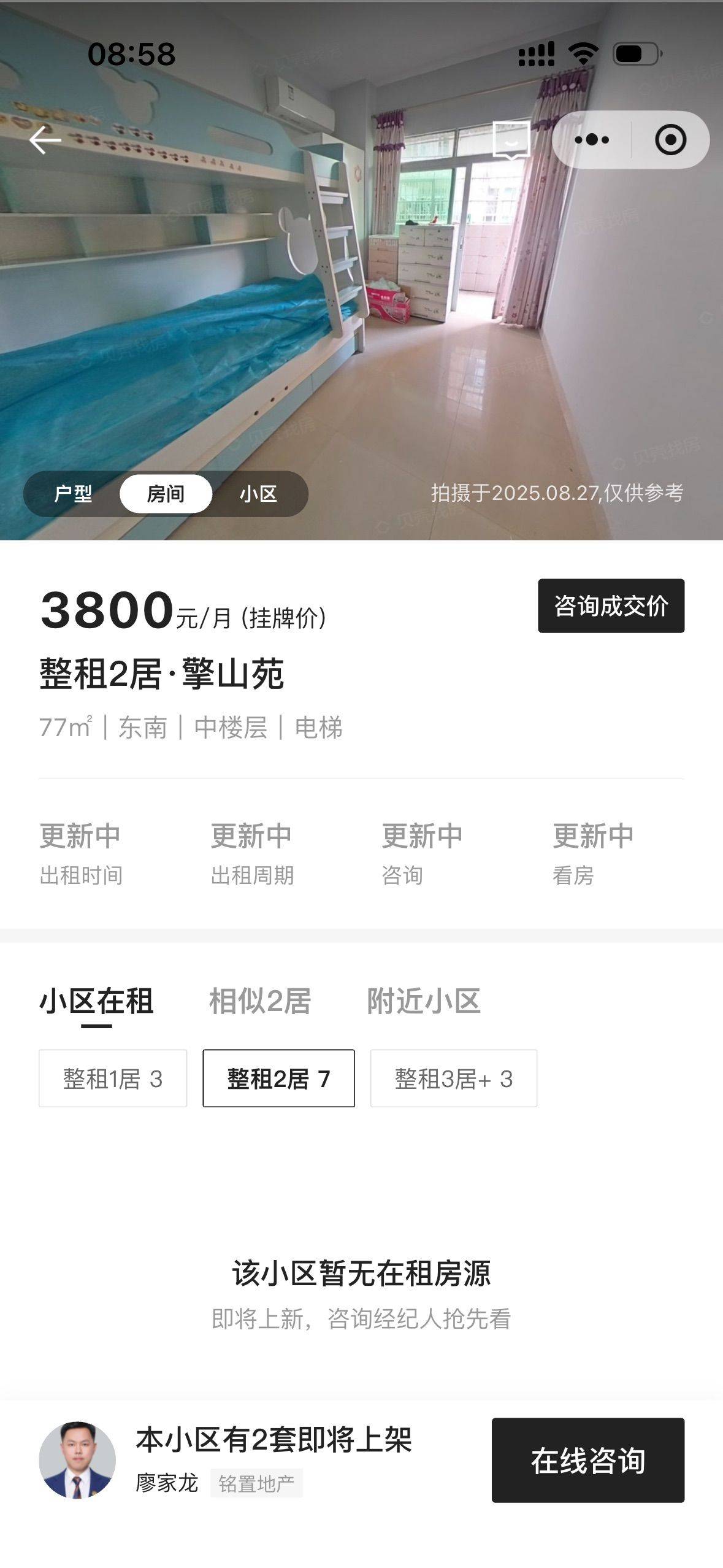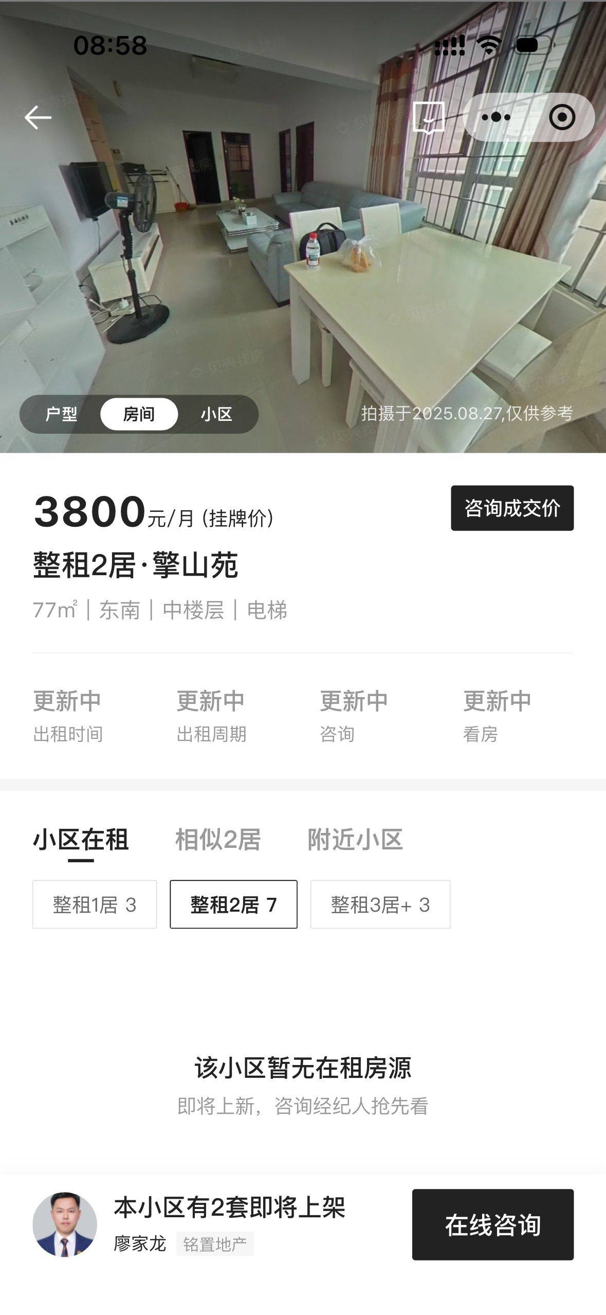 这是一套贝壳上的房源,目前我因为工作调动急需转租。房子合同到明年九月二十,中介费用我已经交了,可以协商入住时间。目前房租还价到了3600,性价比挺高的。整个房子光线特别好,民水民电带天然气,房东人也很好,要什么都直接和他说就行。整个房子还是很干净的,马桶是也我刚入住新换的。周边配套比较成熟,入住体验感很不错。