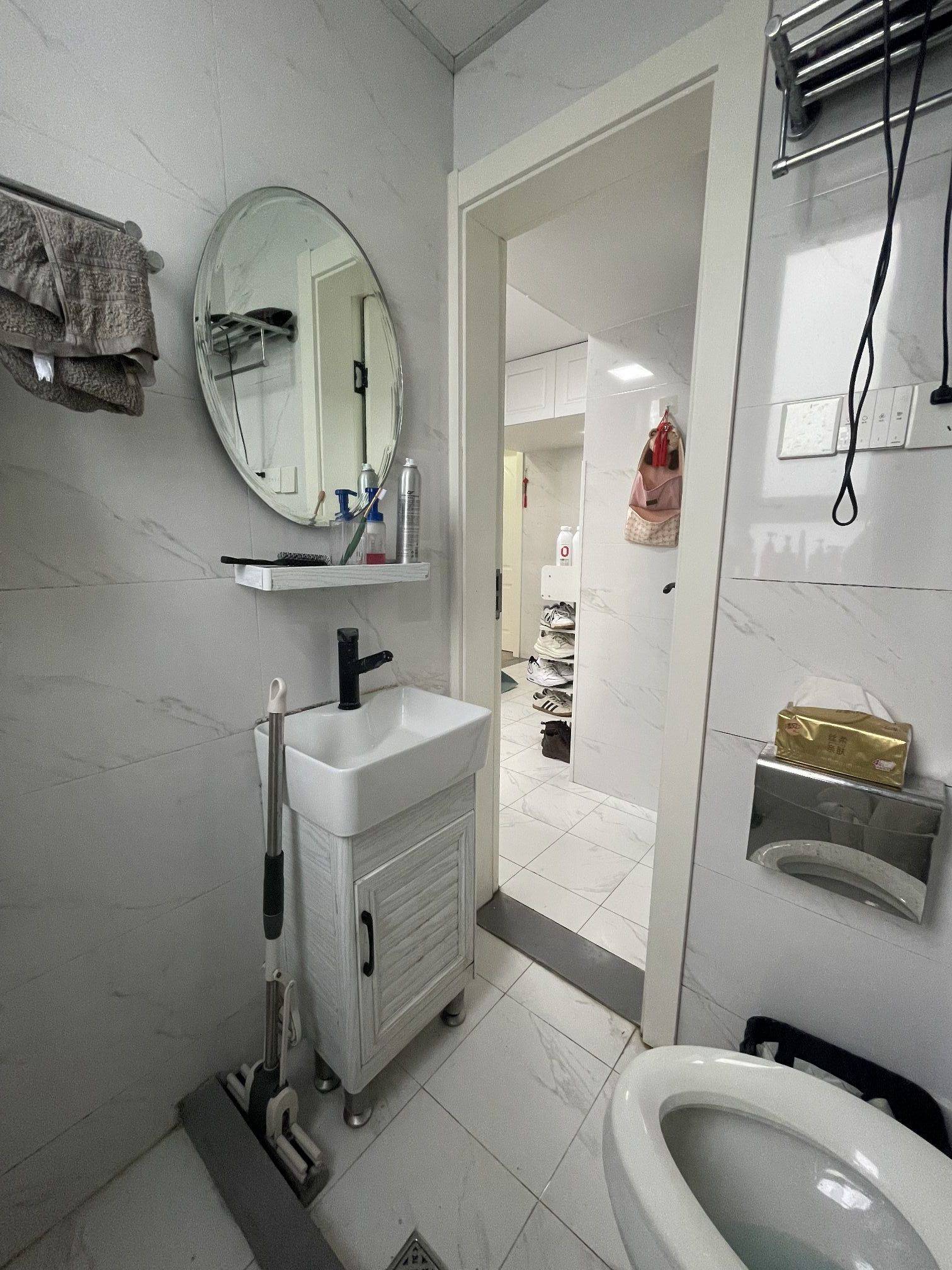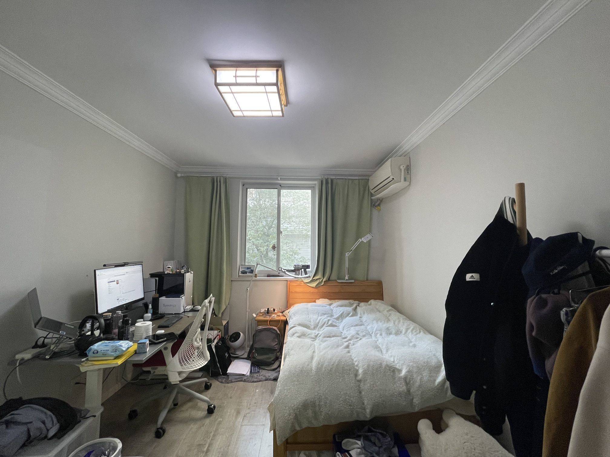需要和室友(男士)公用卫生间、厨房、洗衣机、阳台 【转租原因】 排到公租房,转租现在安静且便捷的宇宙中心小窝。 【房源位置】 黄浦区健乐小区 距离 一大会址新天地地铁站(10、13号线)步行5分钟 距离 马当路地铁站 (9、13号线)步行6分钟 近小红书、凯德、环宇荟 【房屋概况】 二室一厅一卫,次卧出租,厨房、卫生间、阳台公用 电梯房,朝北, 窗外无遮挡,采光不错,窗外可以看到复兴广场 阳台位于主卧,洗衣机在阳台,主卧舍友不在家不锁门,敲门,既可以进入洗衣晒衣服 【舍友概况】 85后男士,广告公司销售,素养高,为人友善,真诚,能友好沟通,公用区域使用后不影响他人使用 舍友作息: 8:30左右出门,晚上7点回家 舍友对阳台洗衣有一定的要求:晚上如果需要洗衣服,十点前尽可能洗完并晒好衣服,不影响他休息 【租金费用】 4100/月,押1付2 民水民电/网络免费 【剩余租期】 合同到2026年3月,到期可与房东续签。 【入住时间】 2026年1月1日 【房间设施】 可拎包入住 次卧房间中,衣架,升降桌,人体工学椅, 床边台灯,床上手机支架 为 个人物品 【看房时间】 工作日晚上6点以后或周末 (具体时间可私信提前沟通)