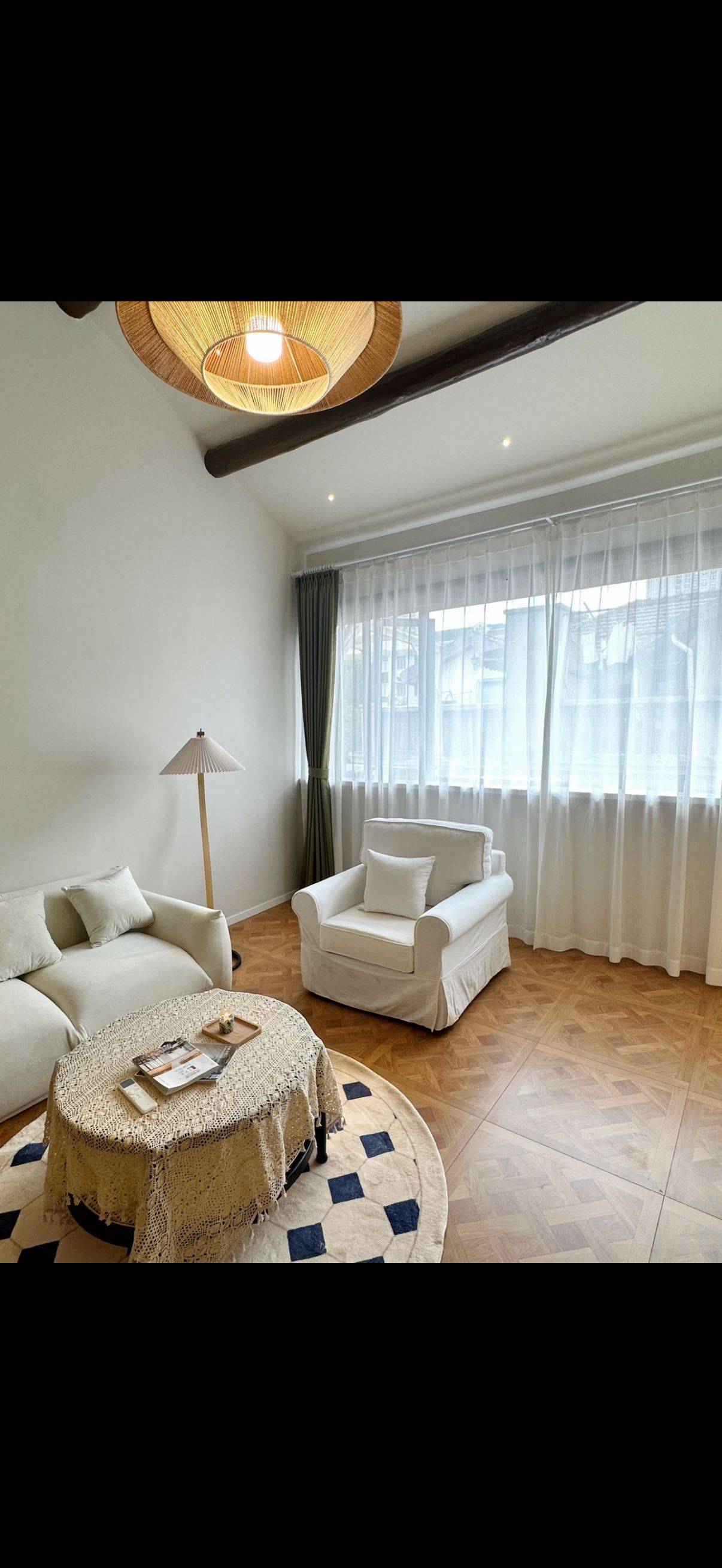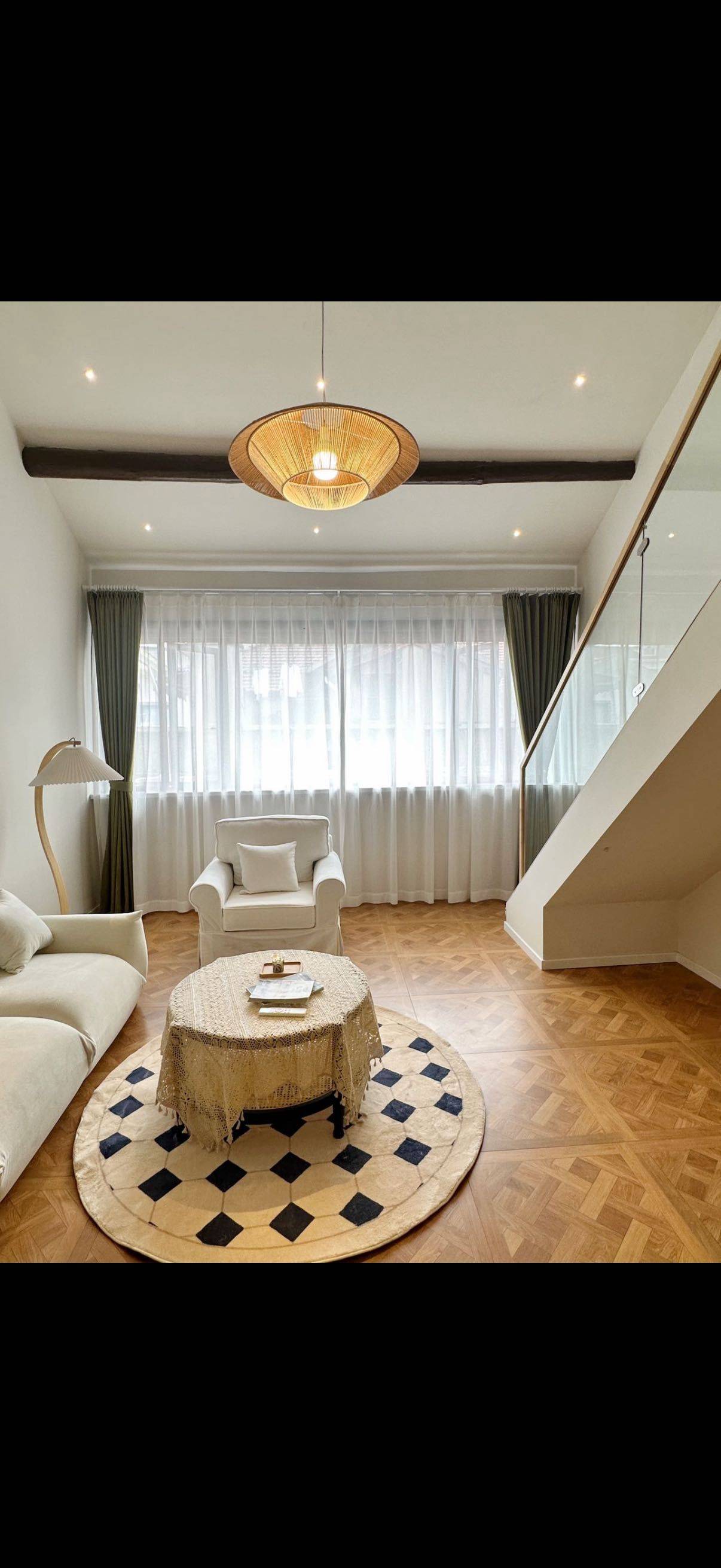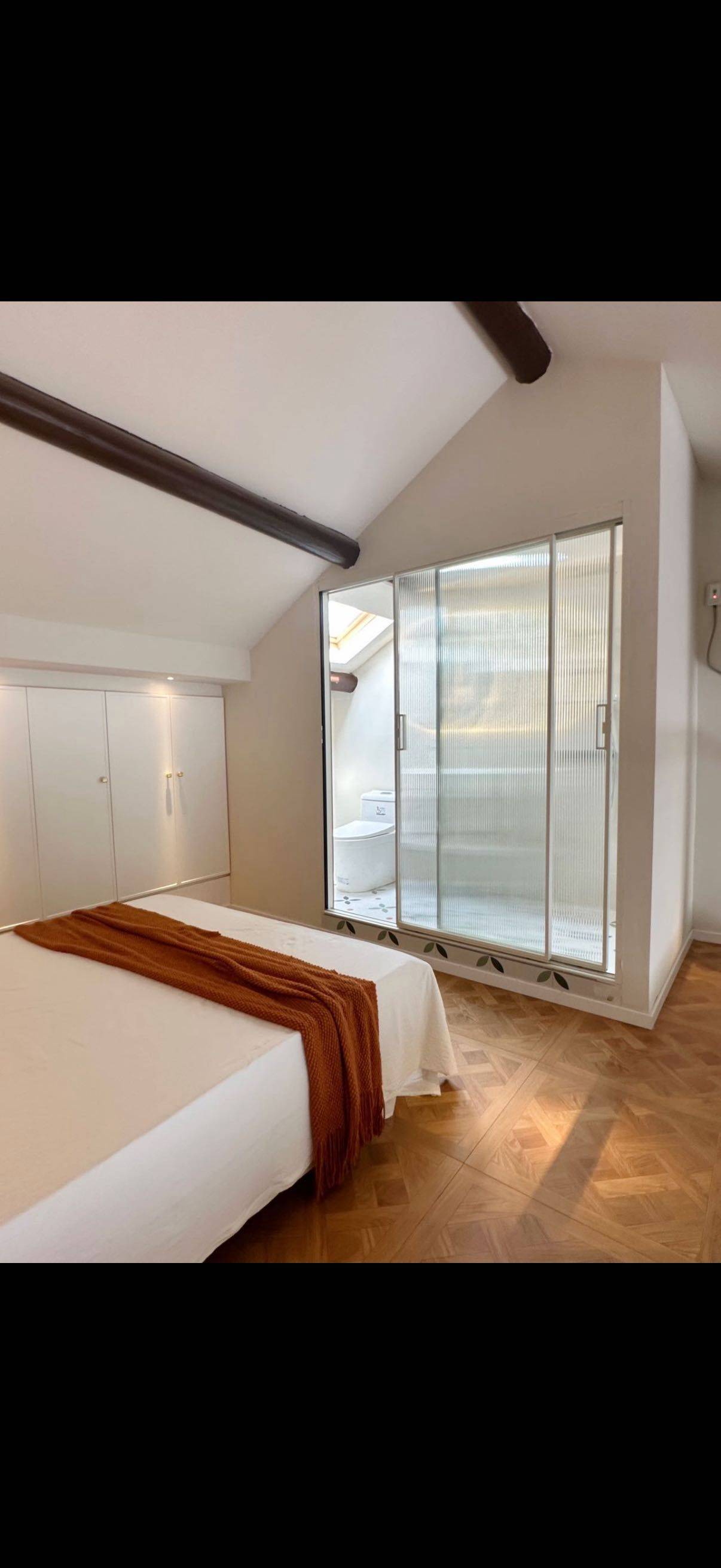 Flat in French Concession on 3rd floor, loft style with very high ceiling. Modern interior and very quiet at night. Air Conditioning + Floor Heating + Oven + Panoramic Windows + Open Kitchen
