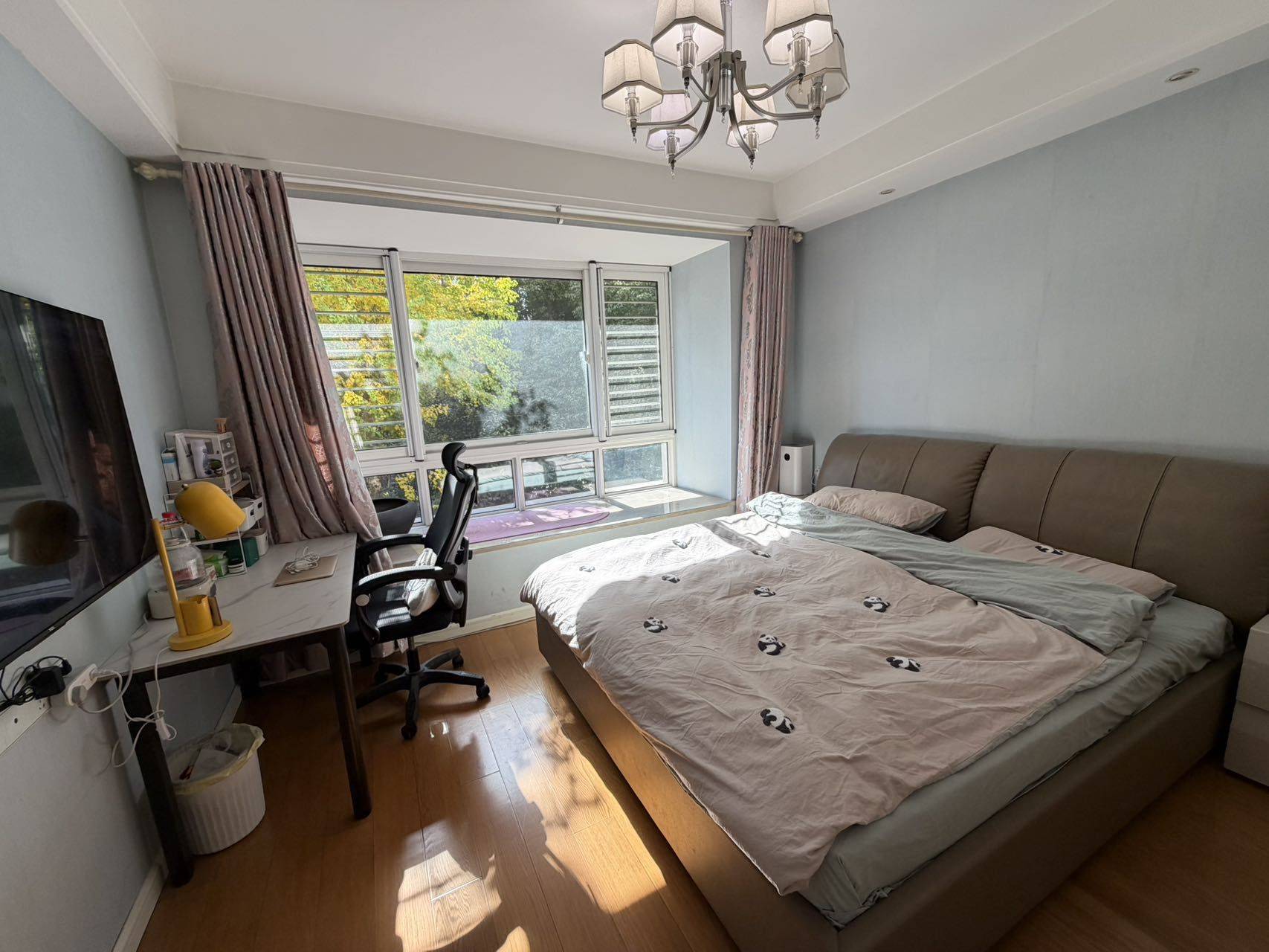 主卧个人转租啦,无中介费,和房东直签,非二房东!窗外有颗银杏树,不出门就可以在房间晒太阳赏秋啦~可以办理优租,可以办理优租,房东人也很好,好说话,处理问题很及时。 💡小区位置靠近东沙湖地铁站和东沙湖邻里中心,生活便利。小区是太阳城天邑,周边感觉是东沙湖这片最热闹的啦,很安全。 💡整套房子是142平的四室一厅一厨一阳台二卫,房间宽敞,主卧外还有一个衣帽间和一间书房,是个大套间,外面还有一道门可以关上,相当于主卧离外面隔了两道门,所以非常安静。现在书房作为杂物房供大家一起放杂物。三个大卧室分布在三个角落,互不打扰,很安静。 💡房子干净整洁,装修很好,非老房子,小区环境很好。小区、电梯需要刷卡进出,比较安全。