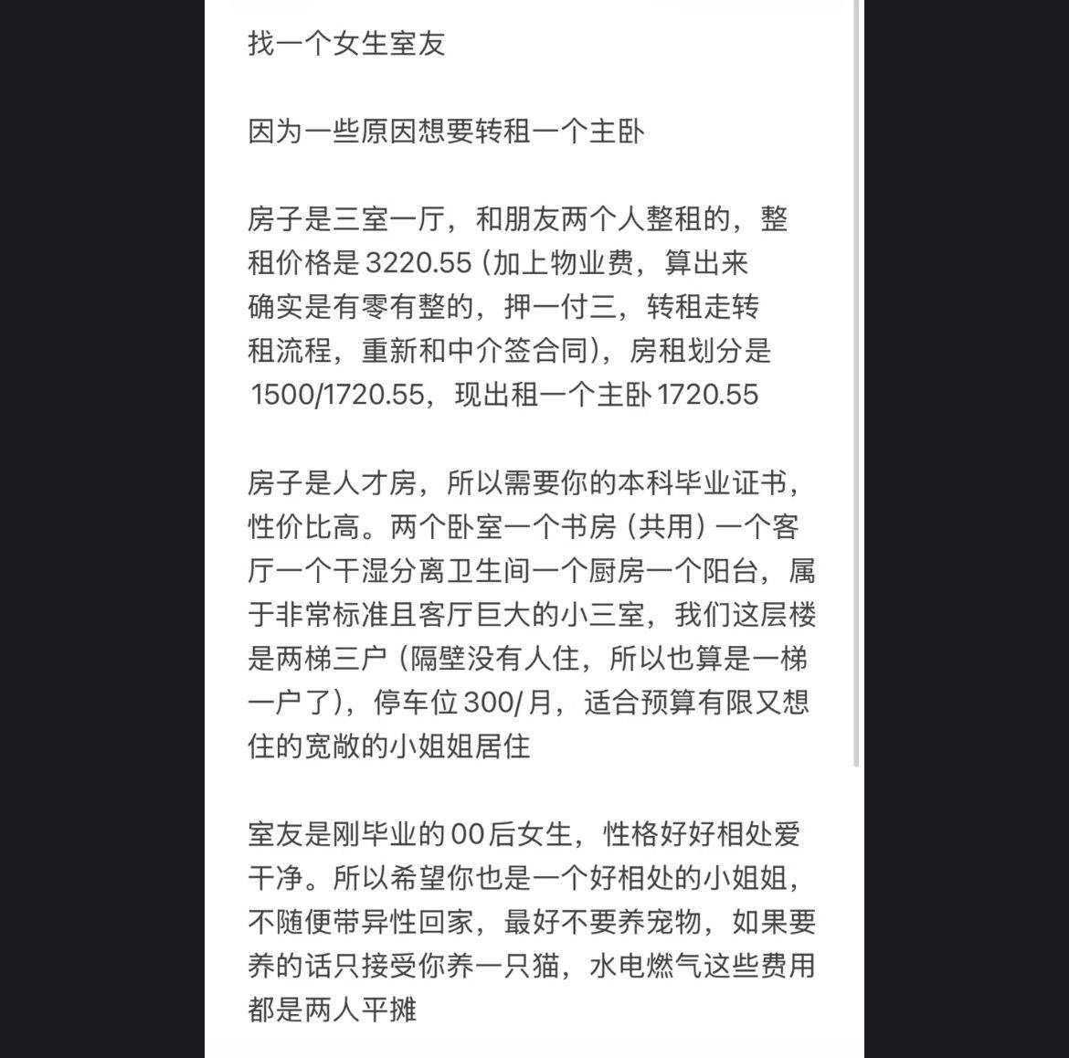 Rent : 1722RMB/M