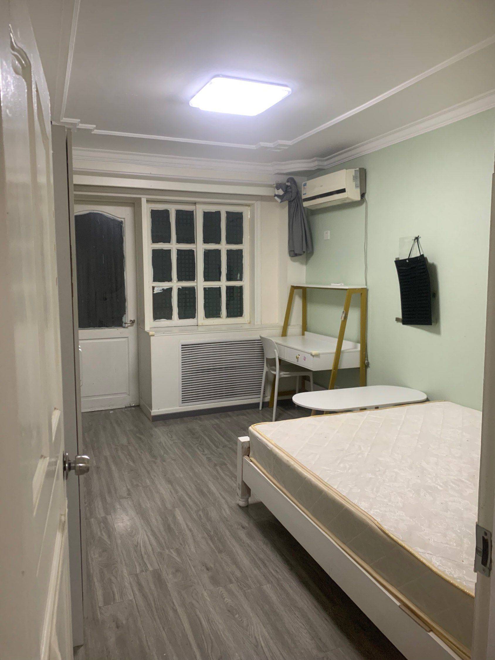 ⚙️设施:有衣柜,两张桌子(图中是之前是沙发和茶几我让中介搬走了,家具什么的可以和他协调)有好几个自己买的铁的置物架、鞋架、全身镜都可以留下,还有一套新的没有用的床上用品。