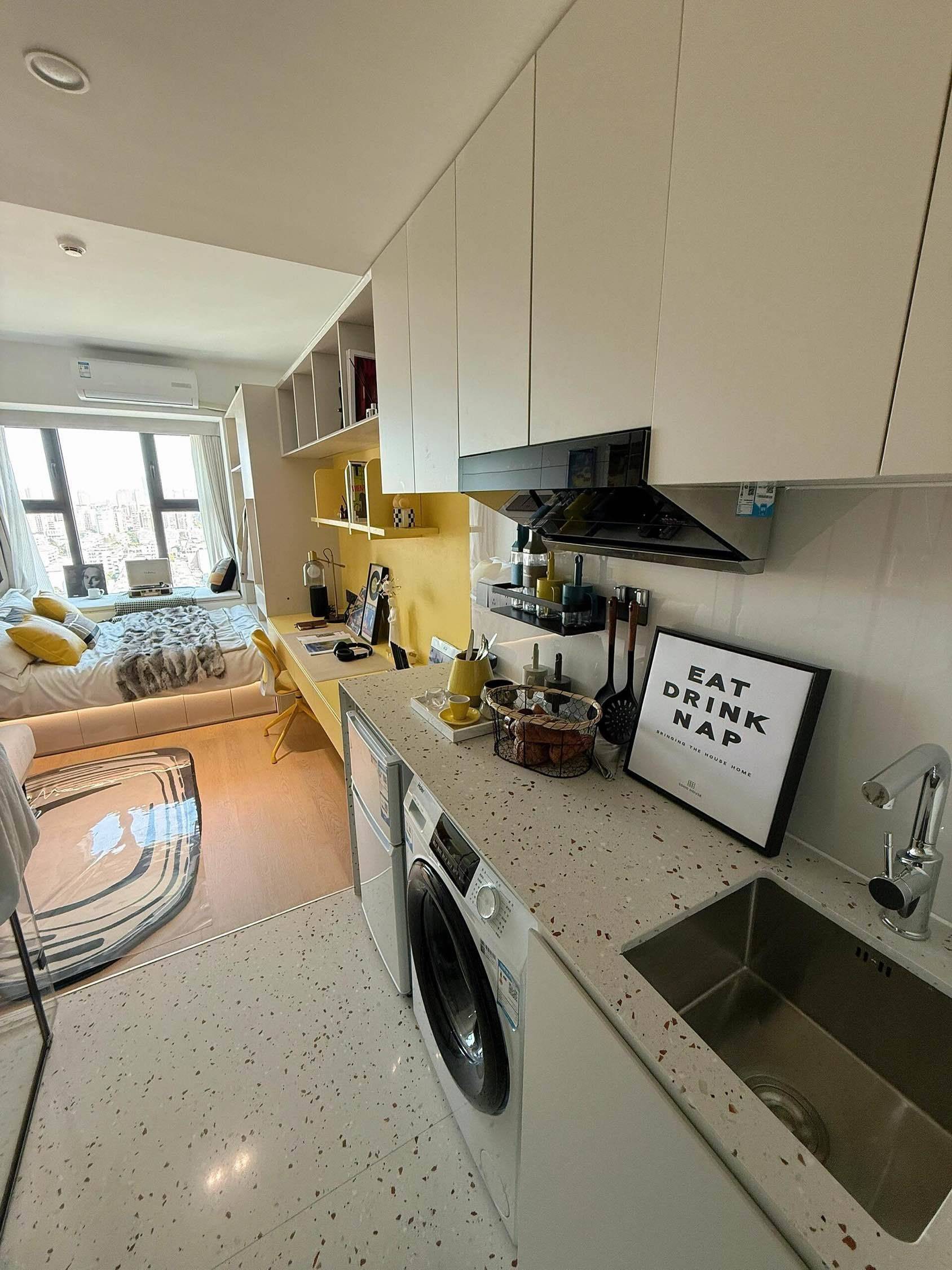 社区前台官方运营号,随时为您在线 可办居证,提取公积金,押一付一、民用水电、青年直租公寓 [项目亮点]:24小时安保服务,智能门禁系统,人脸识别进入:维修,公区保洁,物业,全都免费 [交通]:近地铁,三四分钟即达地铁口;30分钟到徐汇,人民广场,通勤市区超便利 【房问配套]冰箱,洗衣机,,空调,衣柜,书桌,椅子,密码门锁,热水,独立卫浴,明窗透光好,南北通透 [公区]:大型健身房,电梯,蓝球场,公共厨房(电磁炉,抽油烟机),露天晒衣区,菜鸟驿站,全家等 [周边配套]小区四周大型购物商圈,生活超市,水果店,菜市场,奶茶店,小吃街,饭店,酒店,医院,药店等