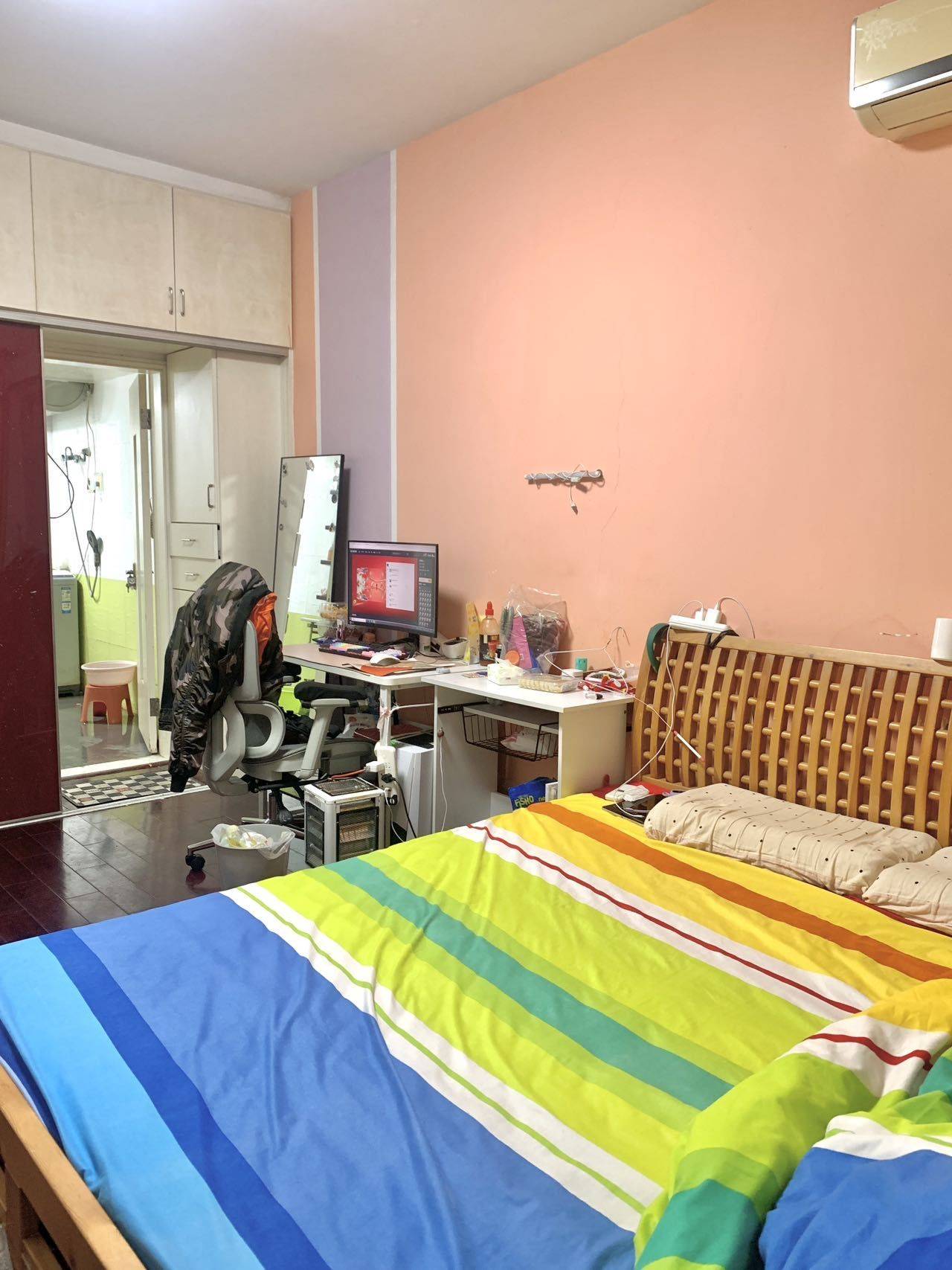 大主卧,独立卫生间、还有个大阳台、有洗衣机、公共区域可以做饭、燃气热水、2米的大床、柜子很多、有Wi-Fi、没有中介费