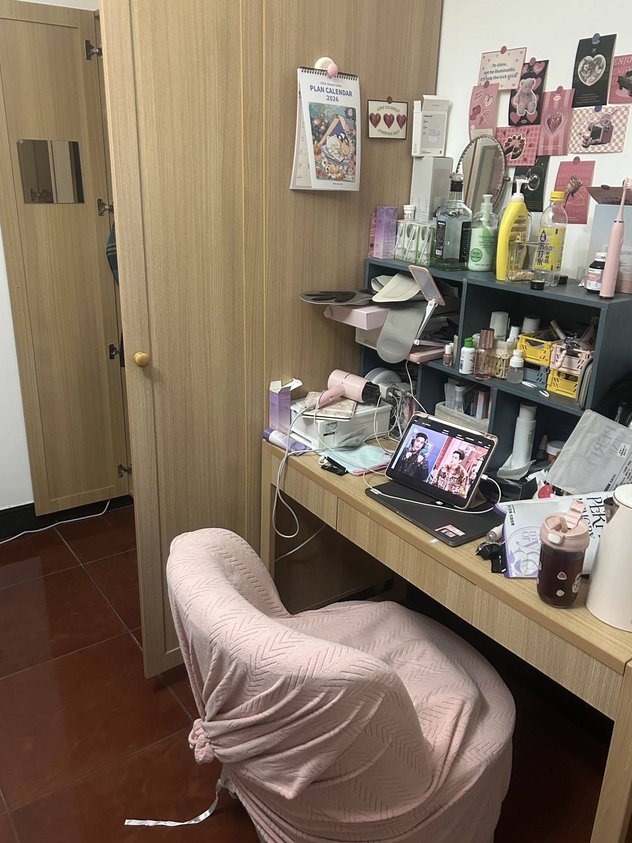 有个人阳台,房间很大,很温馨,三居室共用卫生间,舍友均为女生