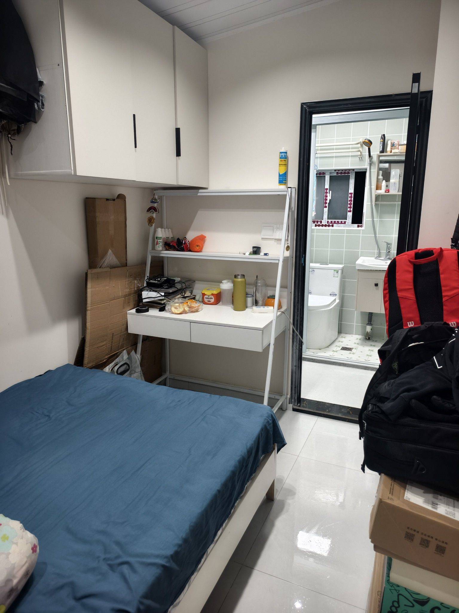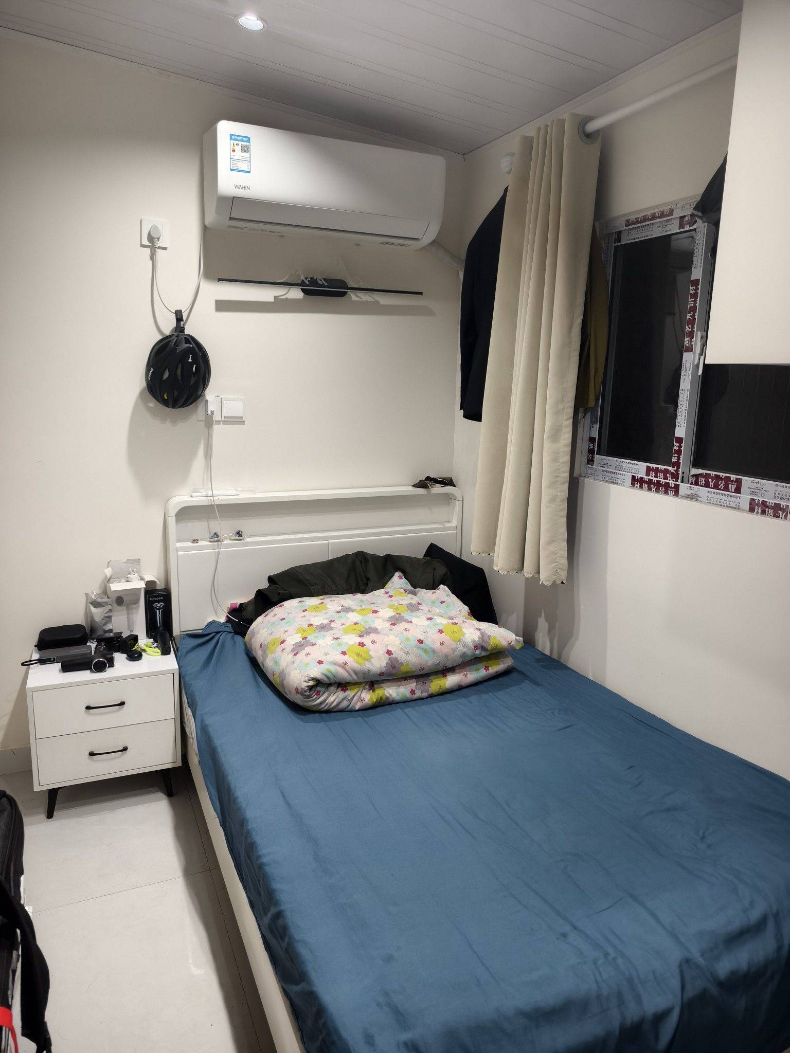 上海闵行区北桥地铁站旁独立卫浴一居转租 1.地址:上海北桥新苗花苑,距离五号线北桥地铁站800米。小区为农村自建类似别墅。本楼栋共两层,个人转租二楼的201。 2.费用方面:租金1350元,速度,电1.2元,押一付一,租期至2026年9月26日。 3.结构:总面积实测10平米,宽2米长5米,高2.5米。两面窗分别为东面与南面,因小区皆为两层自建房固采光未有遮挡。 4.无线网络免费,12月晚高峰期隔墙测速如图。 5.如图所示房东单独隔出厨房与卫生间,本房以旧翻新后出租,本人为装修后新房的第一任租客 6.空调为一级能耗,洗衣机为8升,油烟机未使用,无冰箱,无煤气。 7.床规格为1.9×1.2×0.5m,床垫自带厚20cm。床头柜×1,桌子×1,衣柜×1,门为木门非隔音。