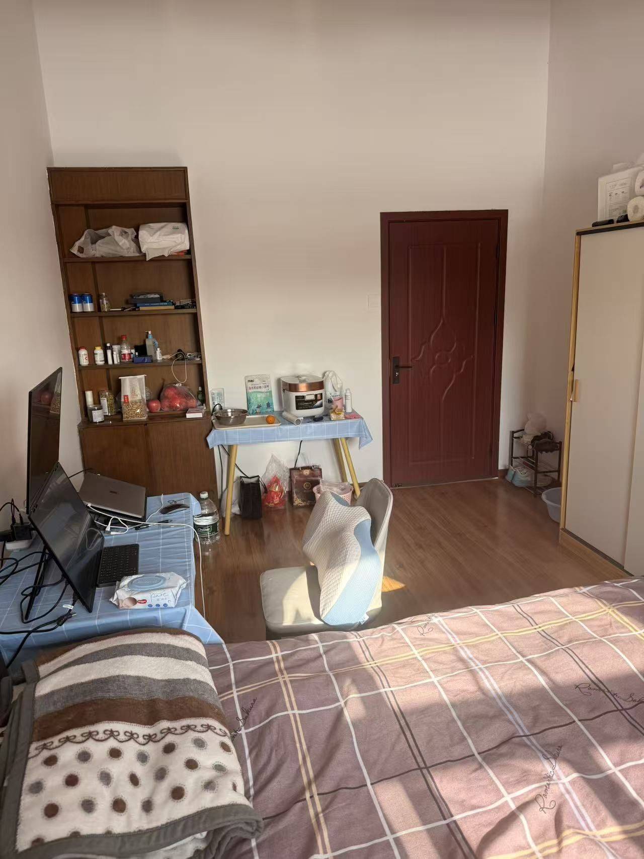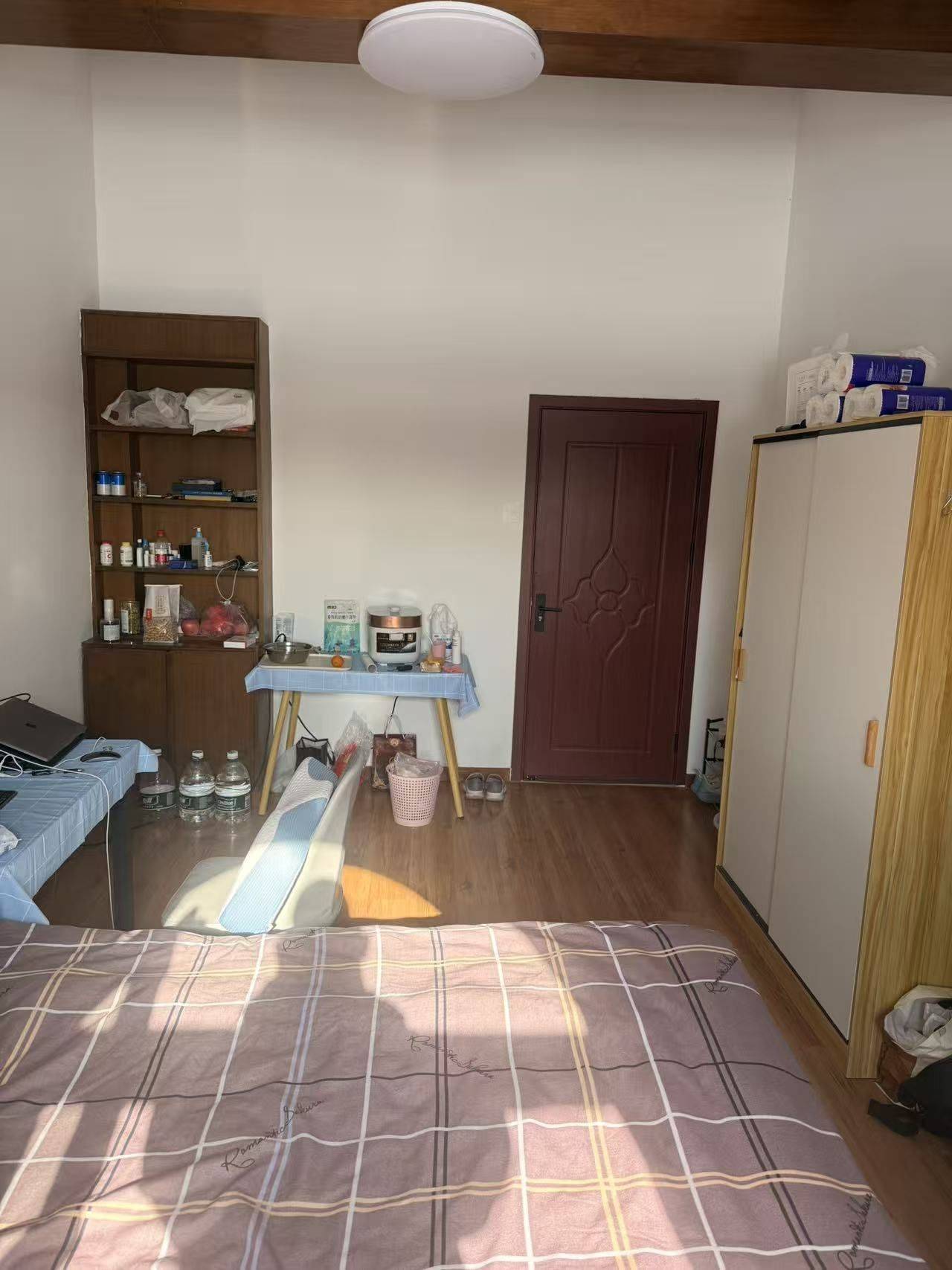 • 主卧朝南 , 南北通透 , 1.8米双人床 , 1.5 匹静音空调 , 书桌 , 椅子 , 双人衣柜,不临街 , 非常安静 , 没有遮挡物 , 采光充足 , 窗户对面没有住户 , 具有良好的私密性