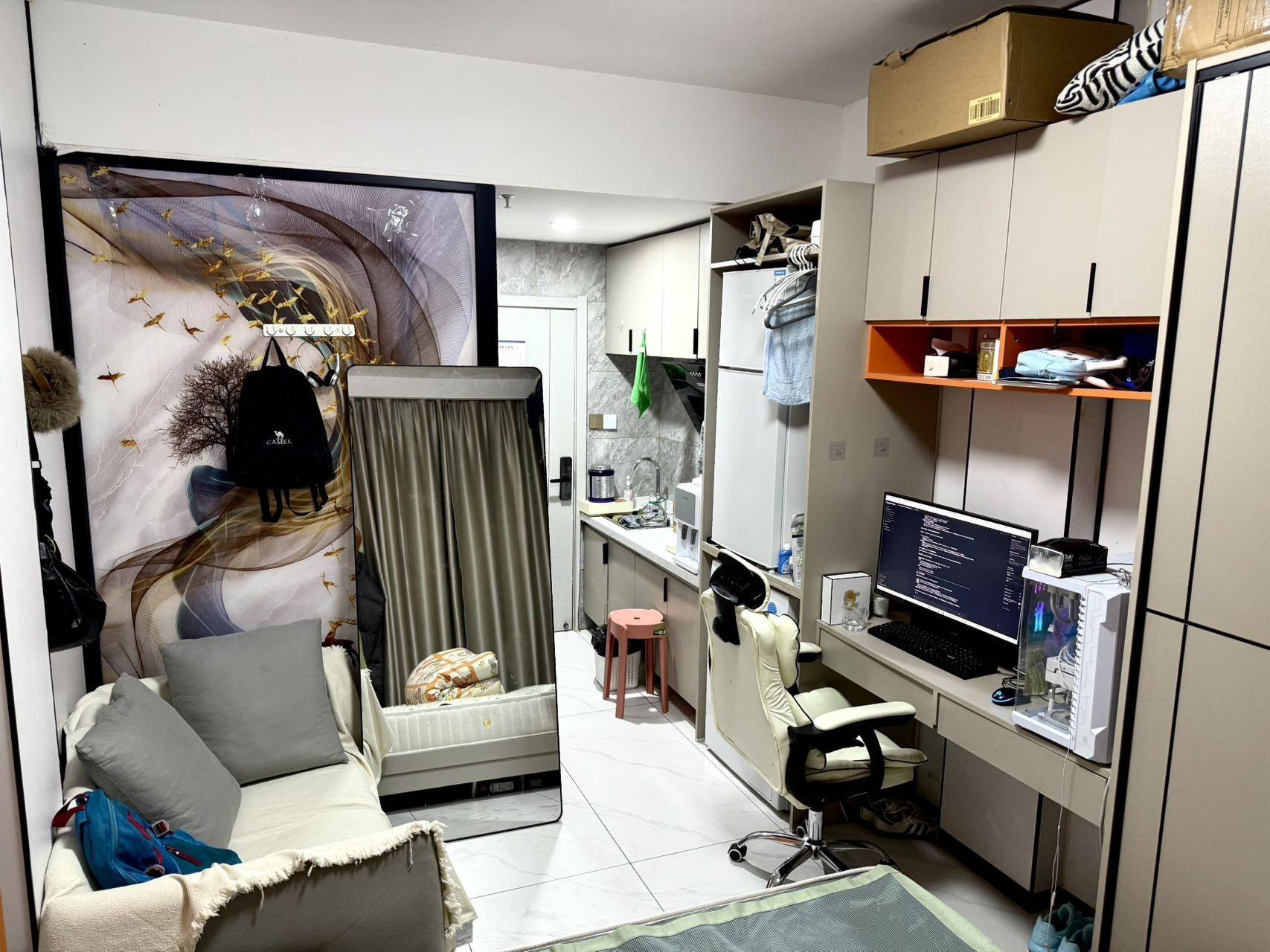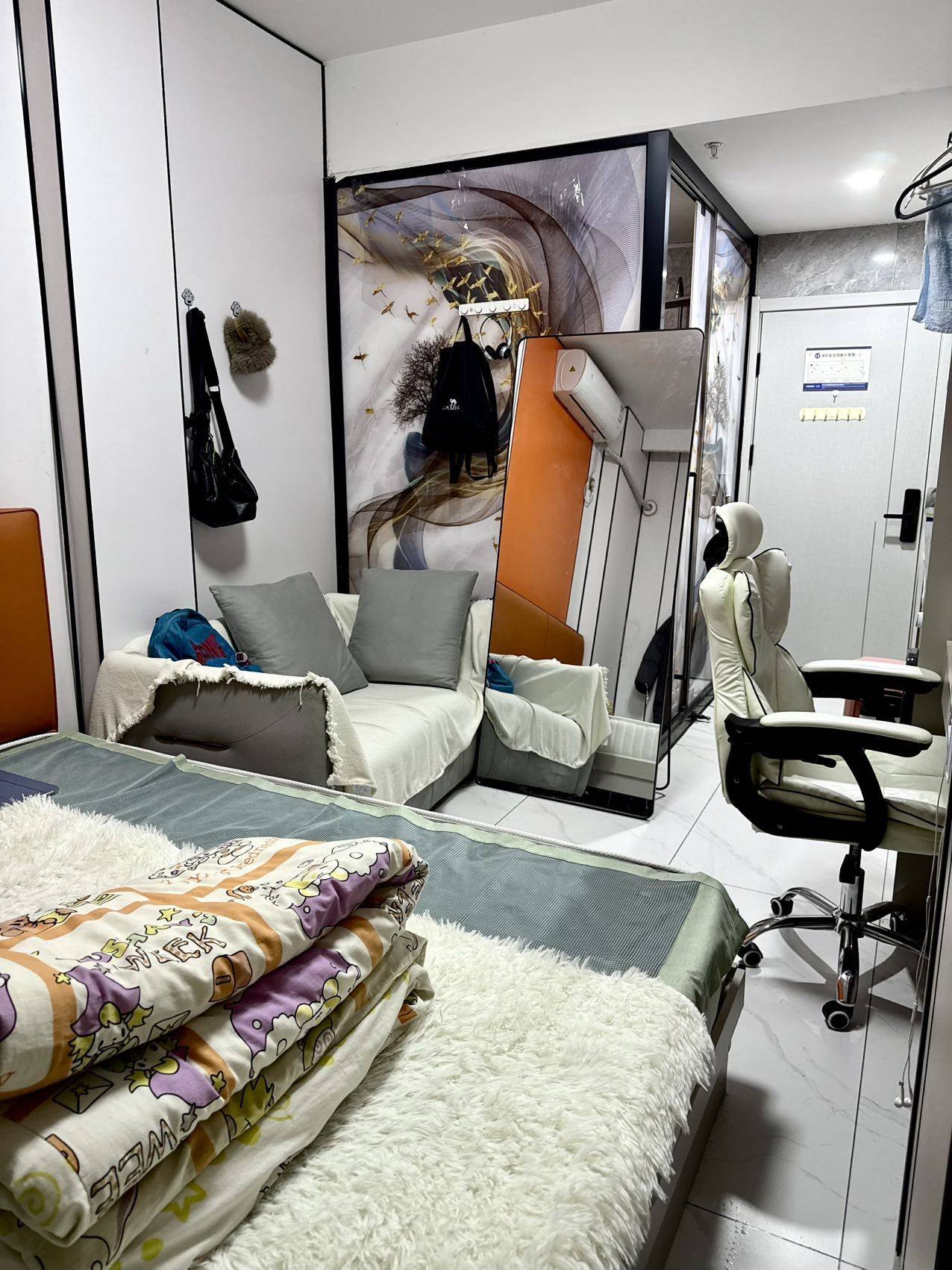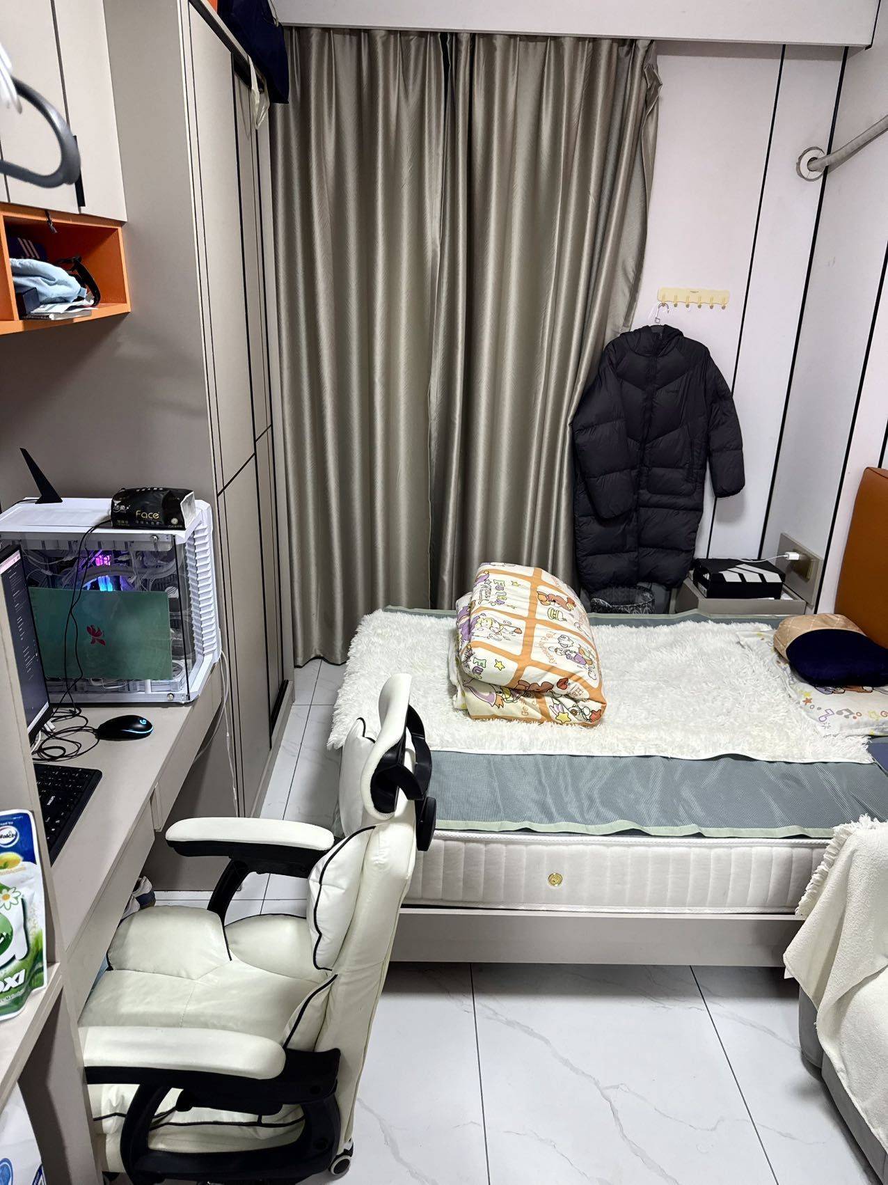 遗留的家具如不介意的话可继续使用,会做好清洁和消毒的,有一把电竞椅、165cm全身镜等等。