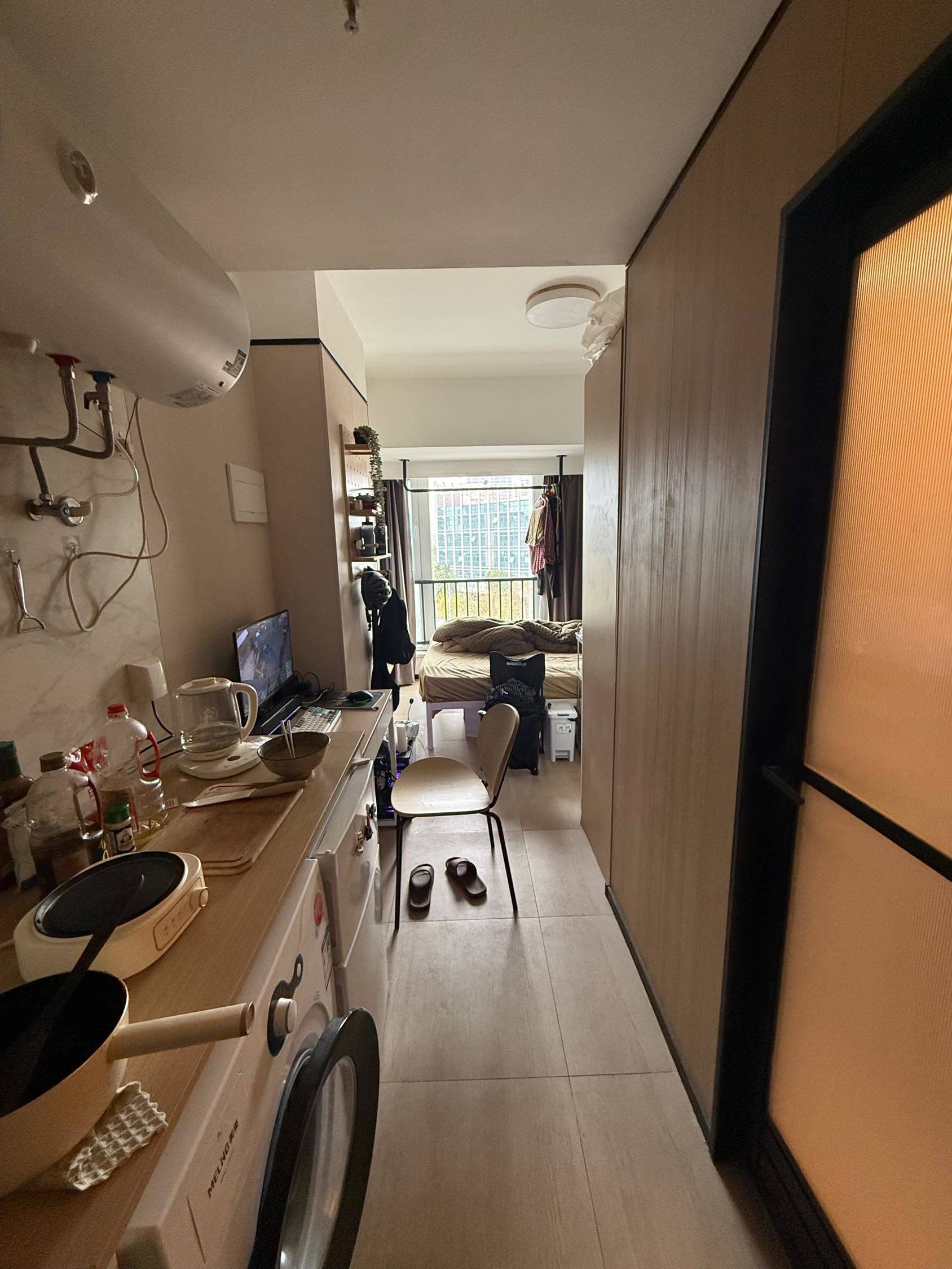 本人因工作地点变更,转租,合同还剩3个月,押一付一,5楼楼层友好,西面北面都有落地窗,采光良好,楼下便利店什么的都有,电梯直达5号线黄河北路地铁站,三楼公区健身房自习室储物房免费使用,电费0.79每度,水费一个月十块左右,