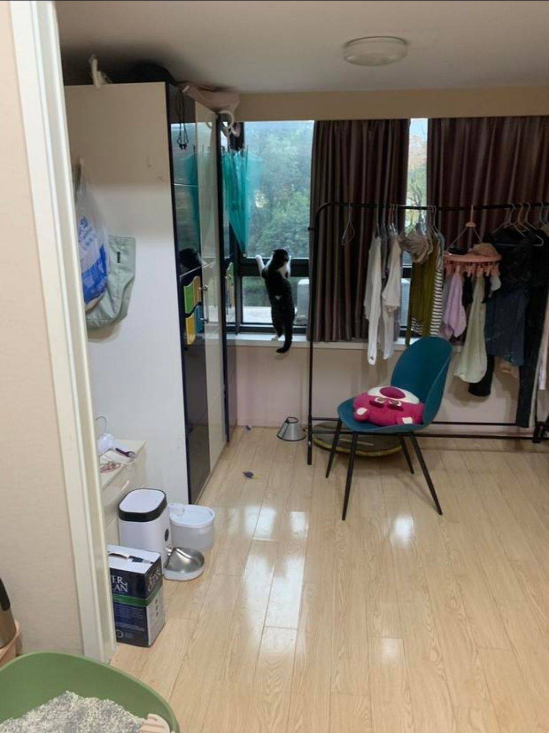 LOFT复式,两室两厅,一楼客厅厨房卫生间,二楼两卧。窗外风景很好,小区绿化很多,宠物友好,社区年轻人多。周边城西银泰、萍水街美食很多,离地铁5号线萍水街站1.3km,骑车几分钟就到了。房间12月底空出,和房东直租,房东小姐姐人很好。
