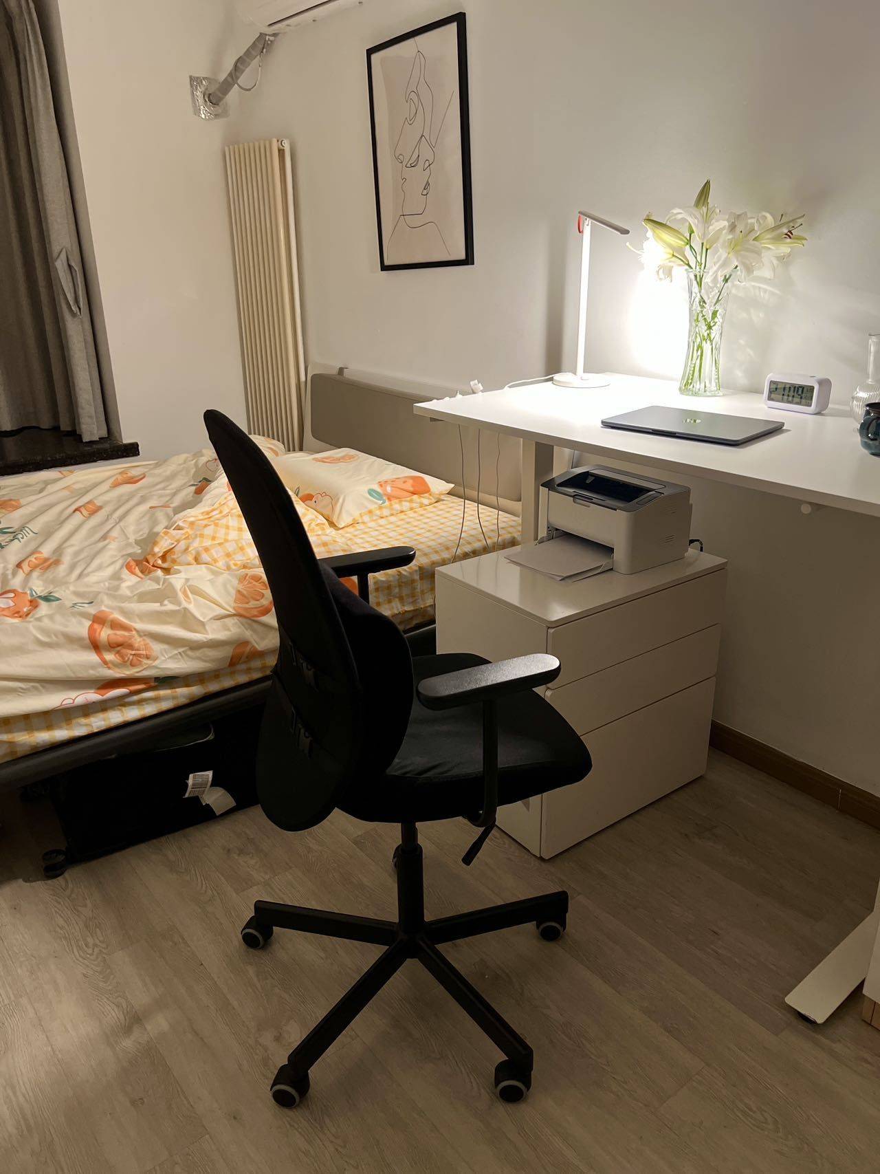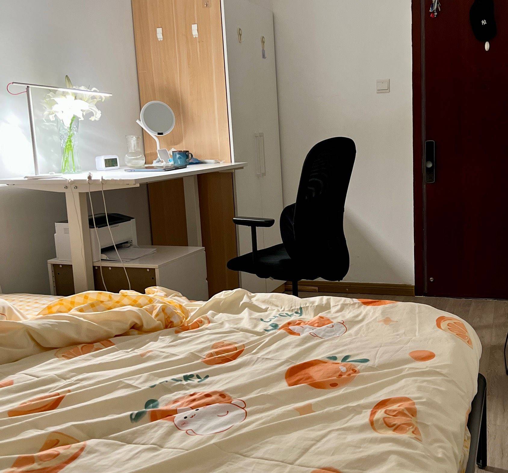 我的宜家升降桌和人体工学椅可以留给你用。宜家的小柜子也是我进来以后买的,也可以留下。房间的衣柜有点小,但是阳台还可以放一整排。客厅也可以放好多东西。当初看房的时候东三环的老小区新小区都看了,最喜欢这个,住进来十个月了也住的很舒服,要搬走了还是很舍不得。