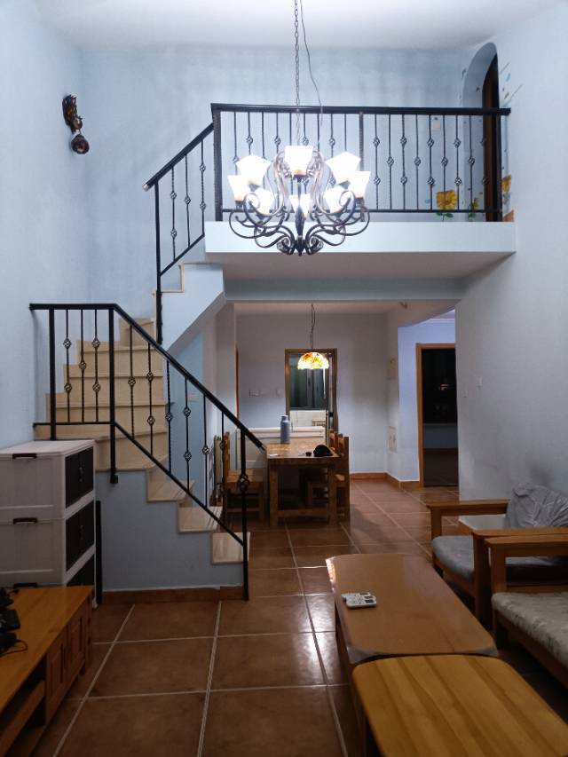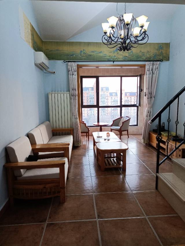 南北两居电梯房,客厅挑高,阁楼有两间30平米储物间,净高2.7,卧室大飘窗,客厅落地窗。客厅158*78cm大榆木桌子。全实木家具。