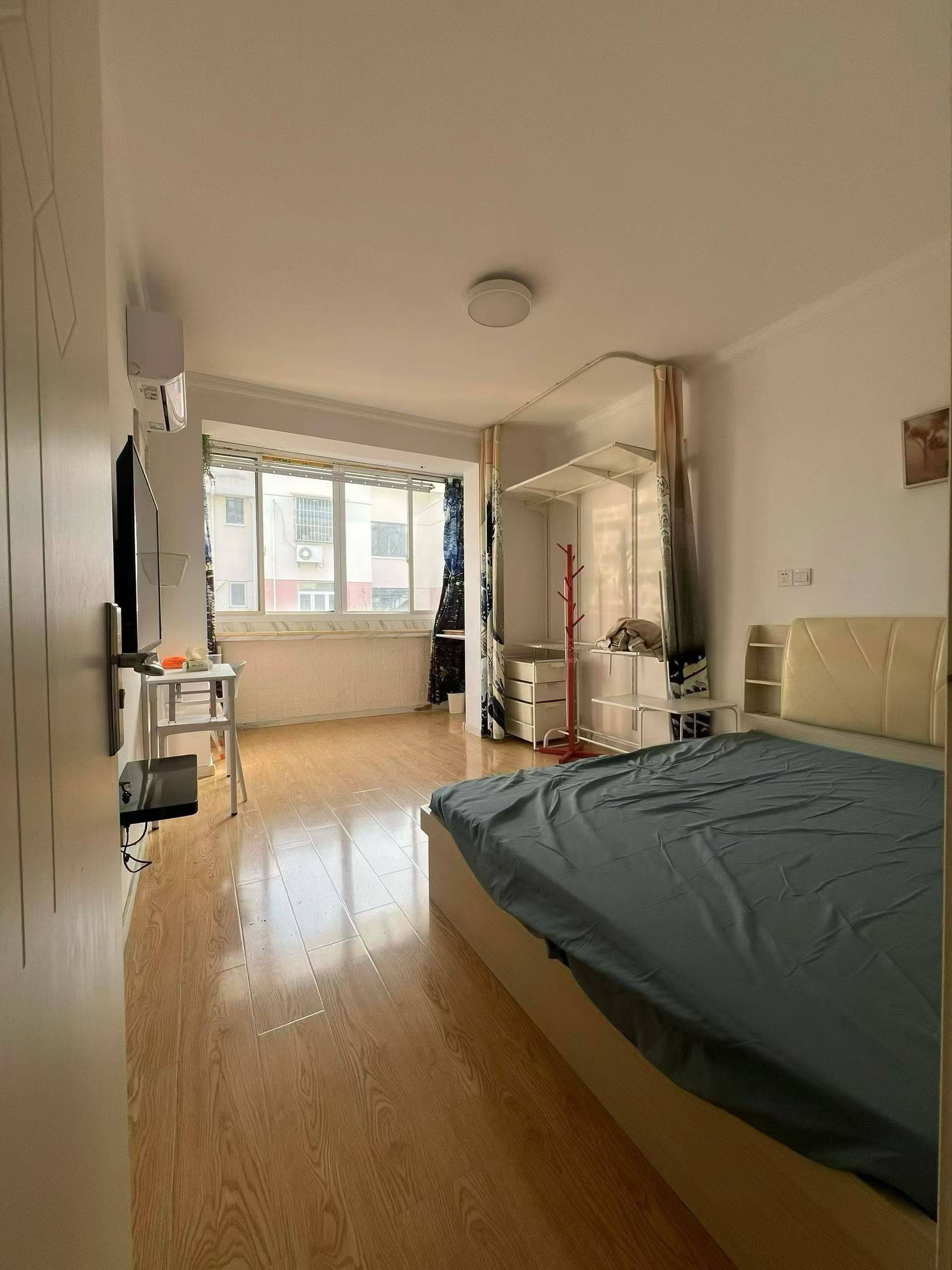 双南户型,两室面宽分别为3.3和3.6米阳光充足,宜家开放式衣柜无甲醇,高箱床大存储空间,全铜花洒清洁卫生