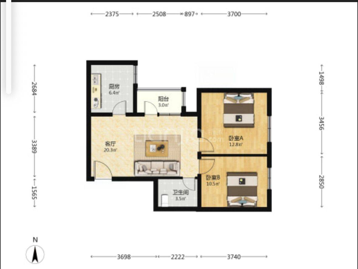 2 卧室/1 洗手间