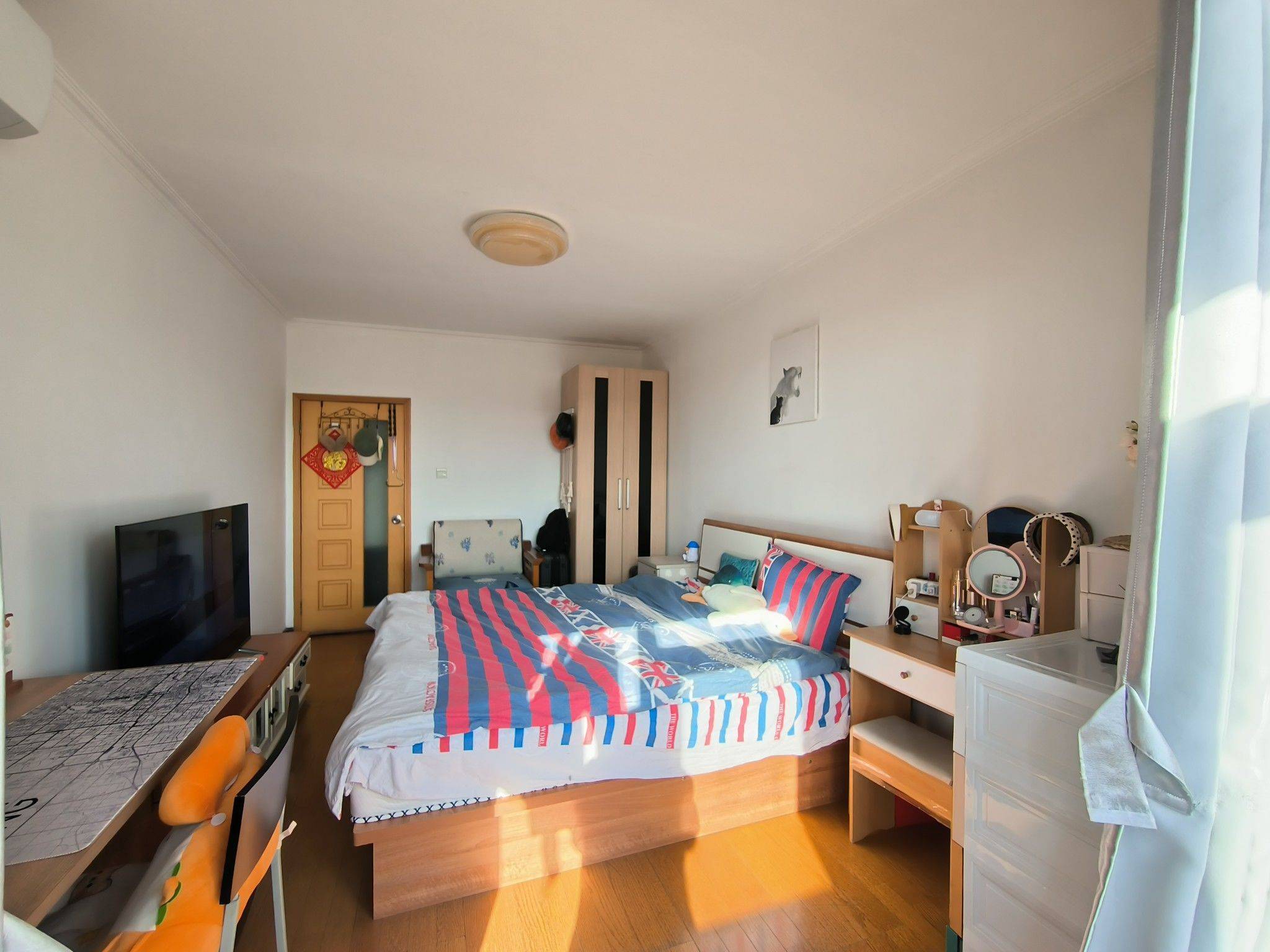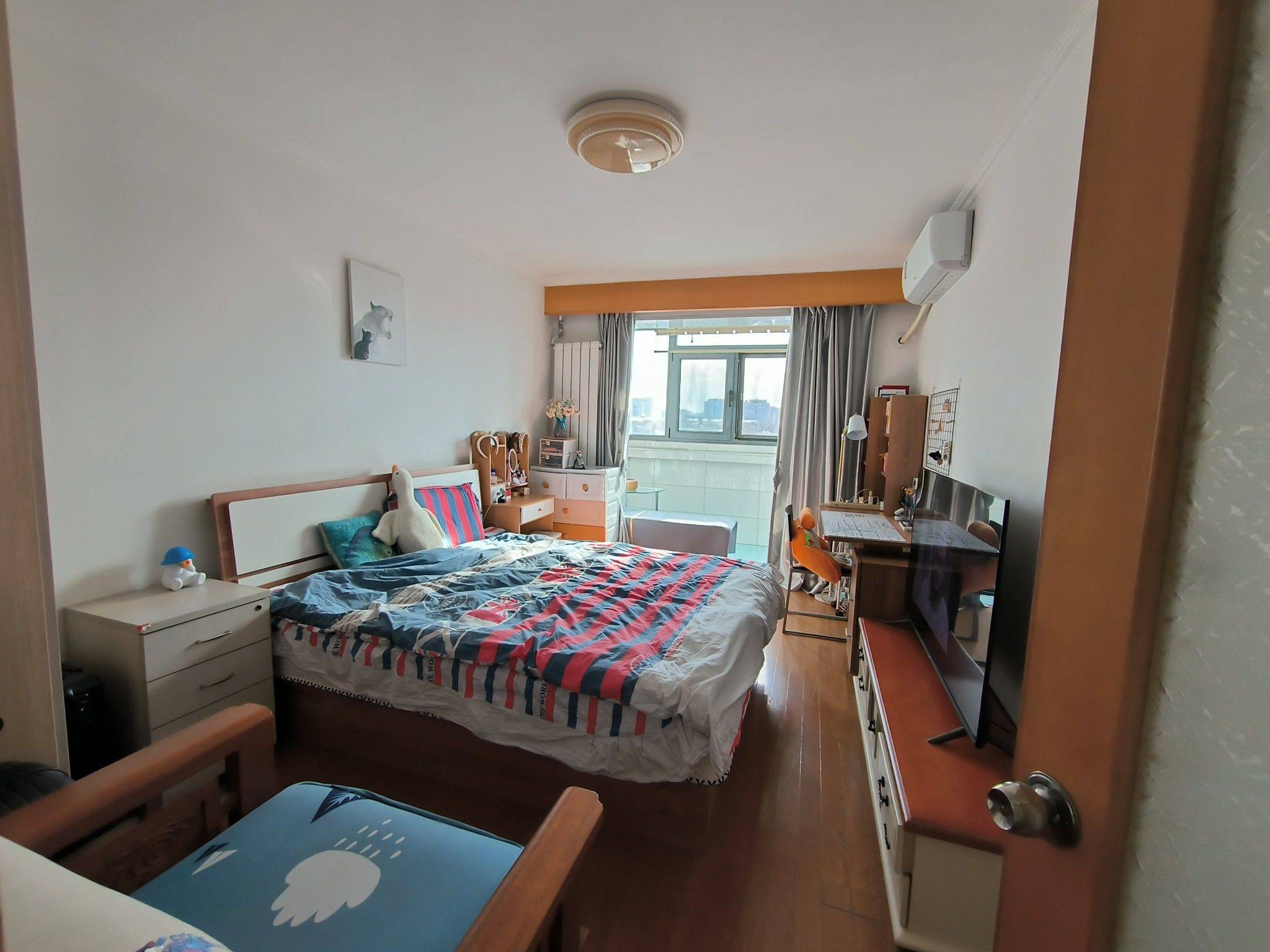 - 自住装修,家具家电齐全,1米8大床、衣柜、电视、空调都有,拎包入住。
