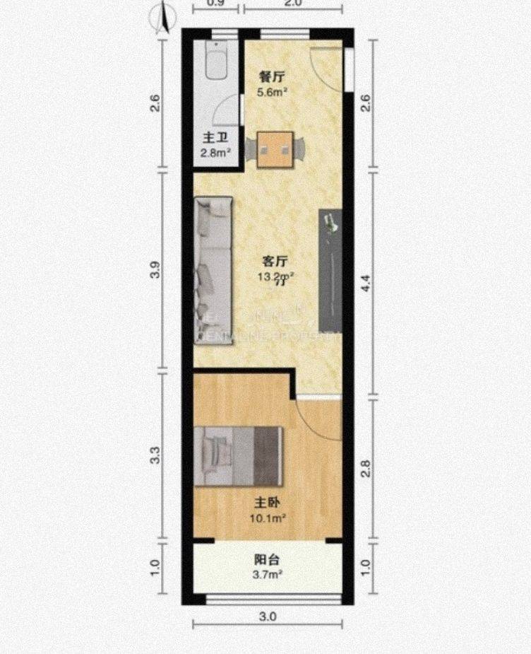 Rent : 3800RMB/M