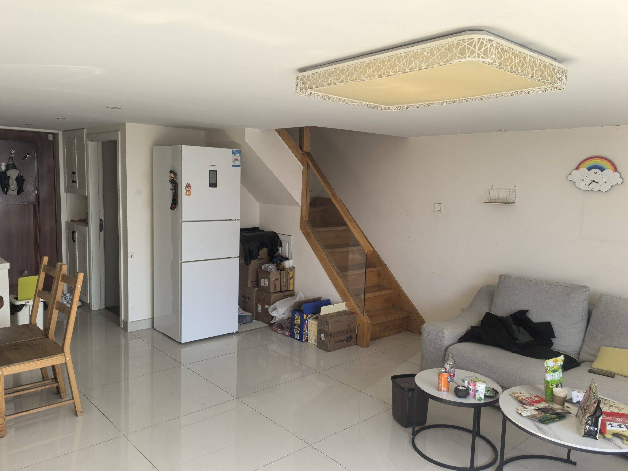 LOFT公寓,屋内面积很宽敞,两个房间都在二楼,现出租次卧。 楼上楼下各一个卫生间,上厕所洗漱我用楼下,你用楼上,但洗澡只能在楼下,洗衣机在楼上。 晾衣服在主卧阳台,二楼卧室外面有足够的衣柜和储物空间。 目前租期到6月20日,到期后可能会和房东续租,所以目前只接受签到6月20日,可押一付一,签合同,到期和房东续租了你可以接着和我续,不然一块搬家。 要求比较爱干净的,主动收拾自己造成的垃圾,袜子和内衣不能用洗衣机洗。 我包水电网费,但你不能浪费水电,人不在记得关灯关空调。