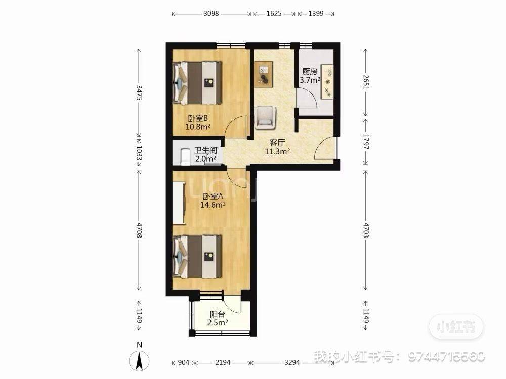 Rent : 2300RMB/M