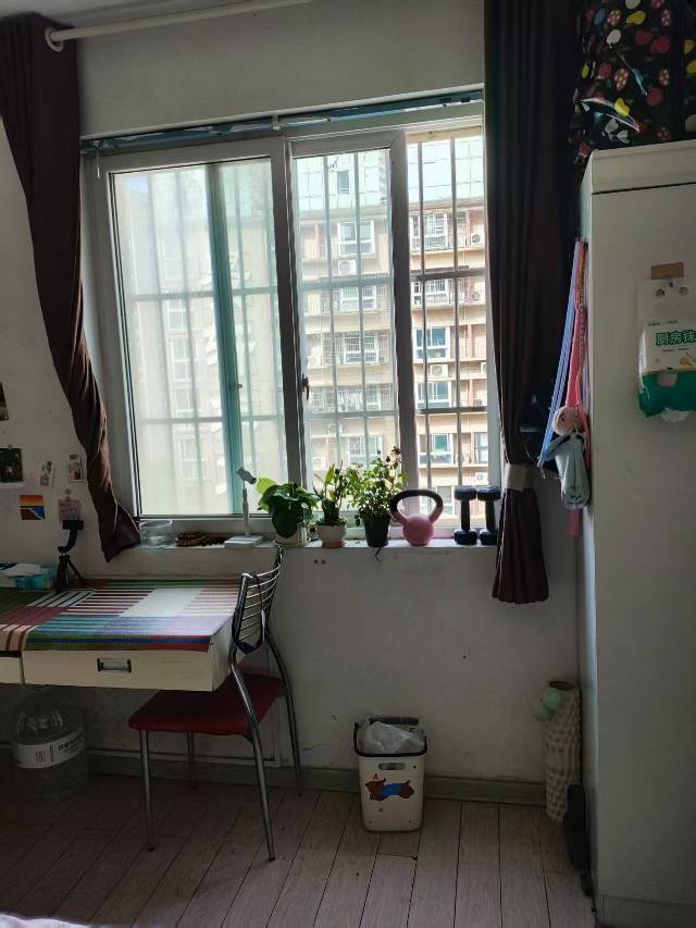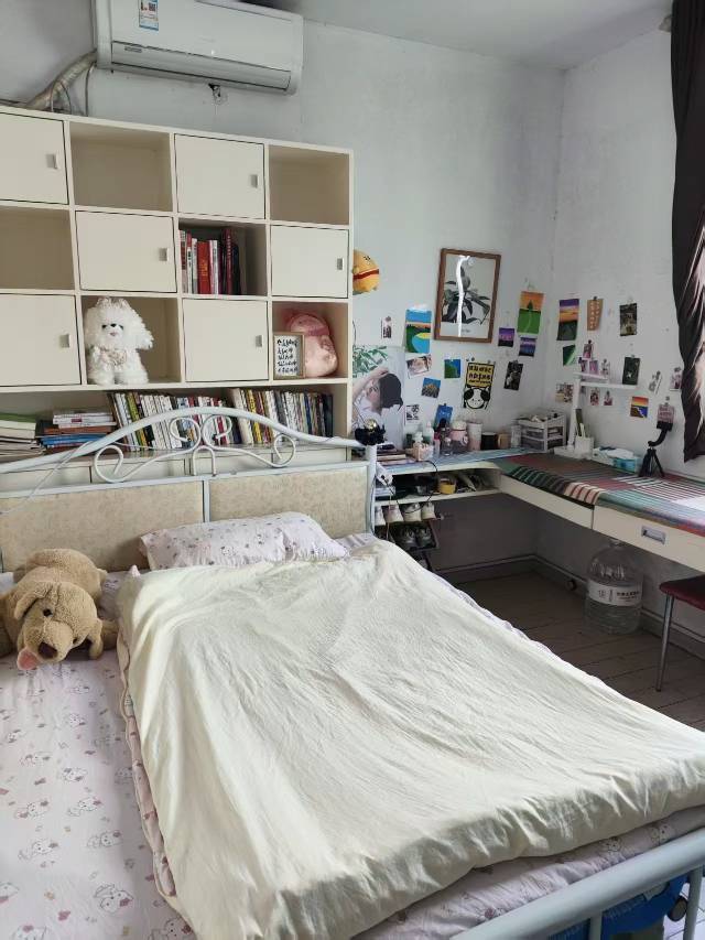 房间有衣柜  有可以放书的柜子 有书桌  晚上 小区很安静不吵