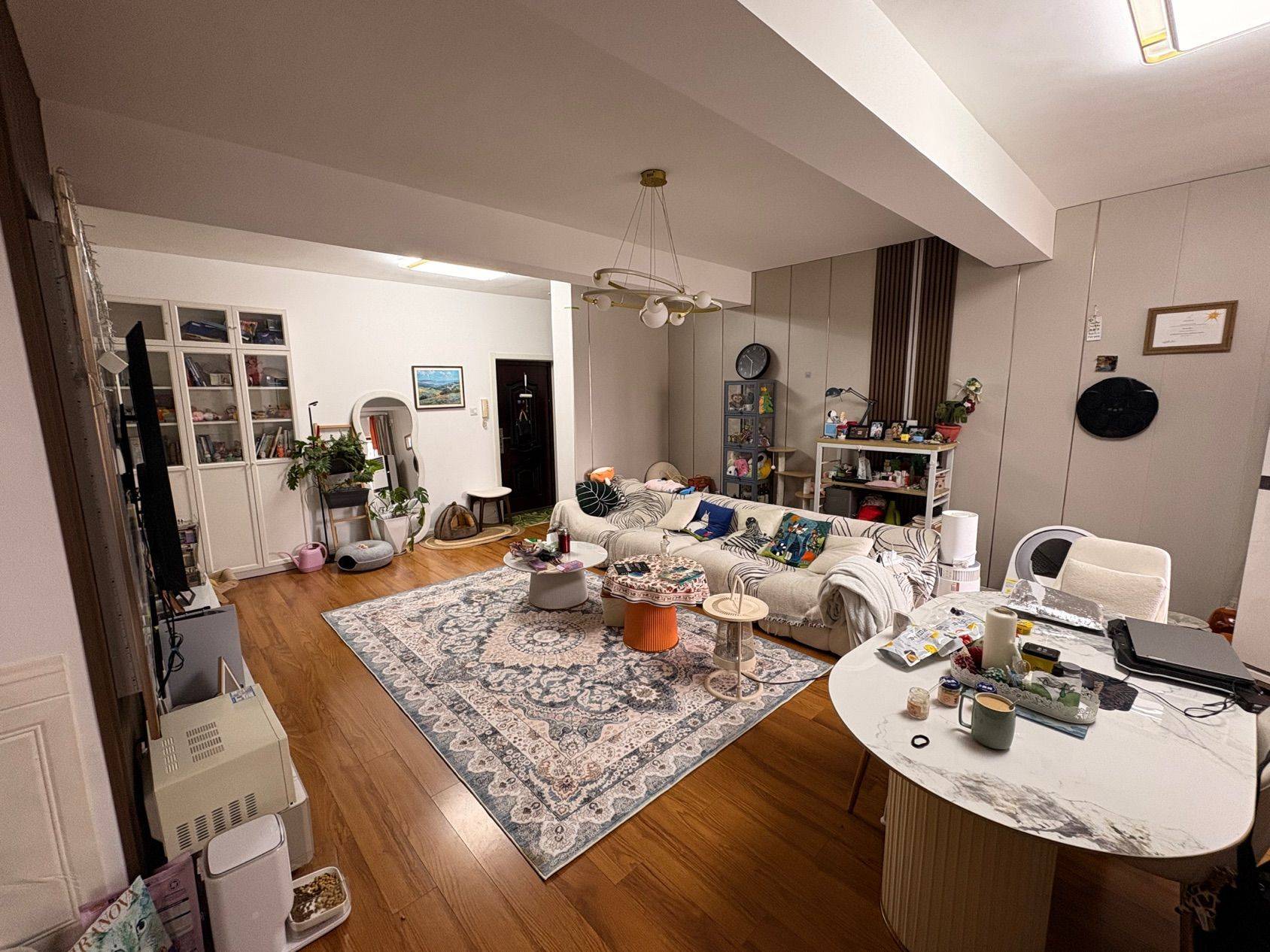 本人房东直租 不讲价 (讲价绕道) 租客要求:女生 有稳定工作(最好是正常上下班的,这样我们时间上就可以错开互不影响)爱干净 不要有宠物 我有一只猫 怕他不习惯 厨卫客厅共享 水电煤 每周阿姨保洁的费用平摊 我第一次合租其他条件暂时还没想到 遇到有眼缘的人就租了 以上信息看完之后再来约看房,做一下自我介绍,包括职业 年龄 之类的 节约时间=珍惜生命谢谢🙏 出租详情:一间30平的大卧室,带1.8大床,大衣柜,储物空间超级多。 家具家电齐全,WiFi 交通便利 :近地铁7/3/4号线 公交:112/738/68/830直通静安寺 人民广场 公共区域 ·:客厅、厨房、卫生间共用,干净整洁 每周还有阿姨三小时深度保洁 大区24小时安保 居住安心
