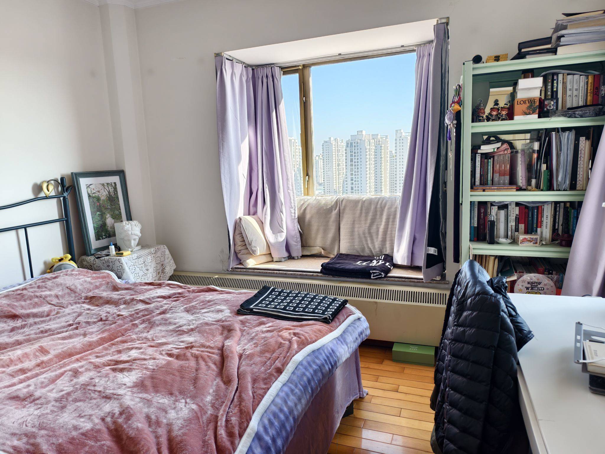 房子是和朋友合租的一套三室一厅中的主卧,带独卫,特别宽敞明亮+舒适。 先说房间,有个朝东的大飘窗,和朝南的小窗子,阳光完全不用愁(我租房子阳光永远是第一位,防抑郁),床是一米八的双人床,房间里有一张桌子和一个床头柜,其他的我都会搬走;独卫也很大,有一个大浴缸,可以泡澡。来拜访的朋友都说这个房间太好了,能一直宅在家里安心写东西! 整个房子非常大,公共区域特也特别宽敞明亮,有个大客厅+餐厅,我们经常窝在沙发里一起看电视;厨房也很大,能同时容纳三四个人,还有一个咱们自己的洗衣房(洗衣机+烘干机),一个杂物间,大的行李、杂物都可以放进去。这个小区当年是香港人设计的,所以各种收纳空间都非常生活化,人性化,跟北京常有的那种塔楼完全不一样。 再来说说室友,两个室友也是我非常好的朋友,影视传媒行业,非常好的姑娘,很有边界感,也完全不会枯燥无聊,毕竟我们的第一要义就是要在北京有个像家一样的地方!有时间我们会邀请朋友们来家里玩,朋友们都称这里为“青年路欢乐颂”!嗷对了,家里还有两只小猫咪,非常粘人非常可爱,它们一般在公共区活动,你可以把门关了不让它们进房间。 小区不大,人员不杂,小区里就有健身房、游泳池、网球场,当然啦,需要办卡,价格和外面差不多吧,网球场预订便宜。 考虑到一起居住,这个房间仅考虑女性,生活习惯良好,不常带异性回家,能接受小猫咪,别的没啥了。 我1月底离开北京,房子1.31左右空出来,不会晚于这个时间。