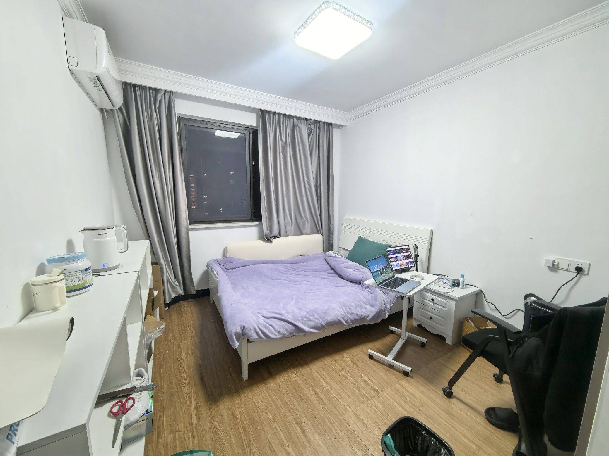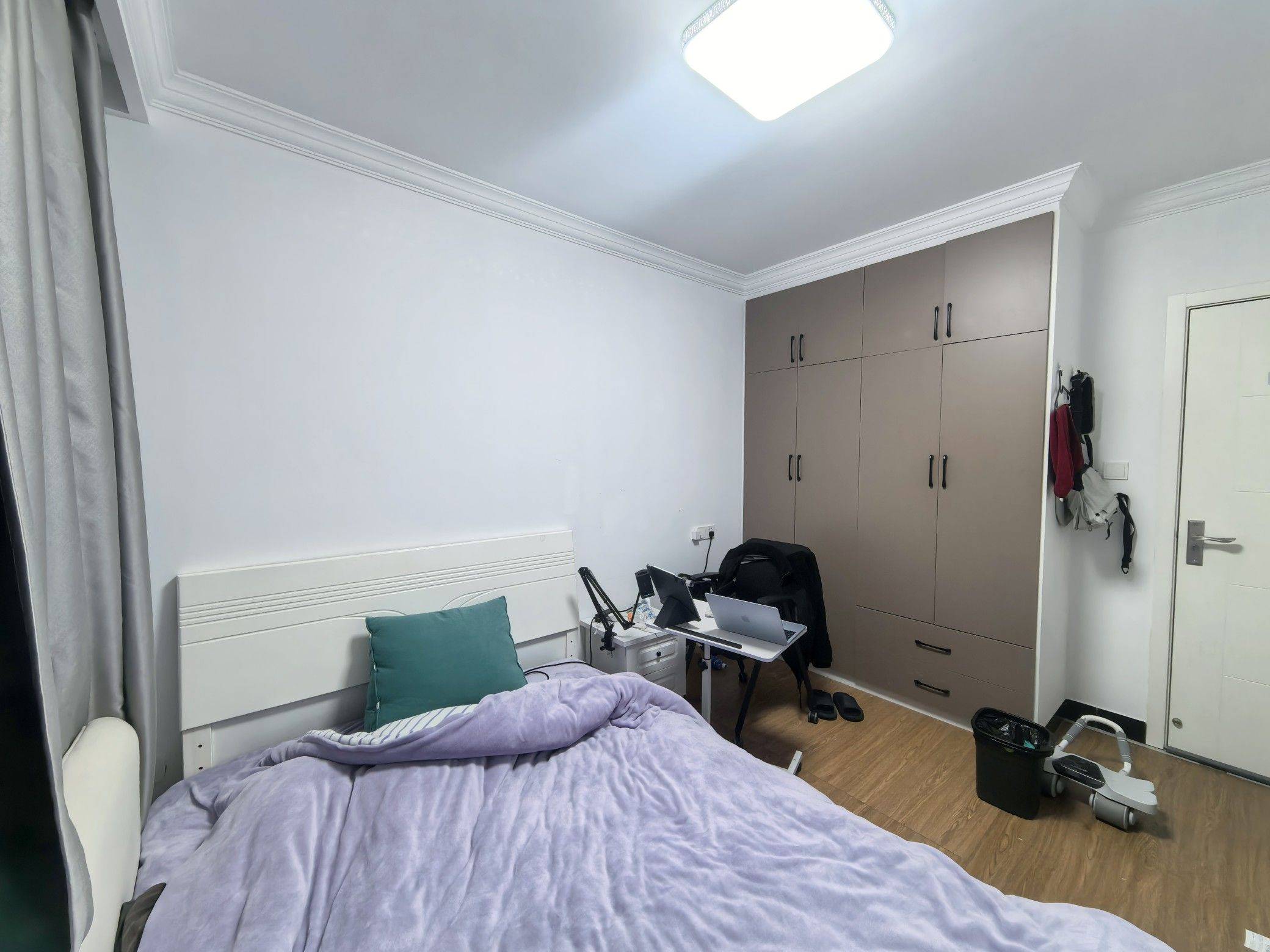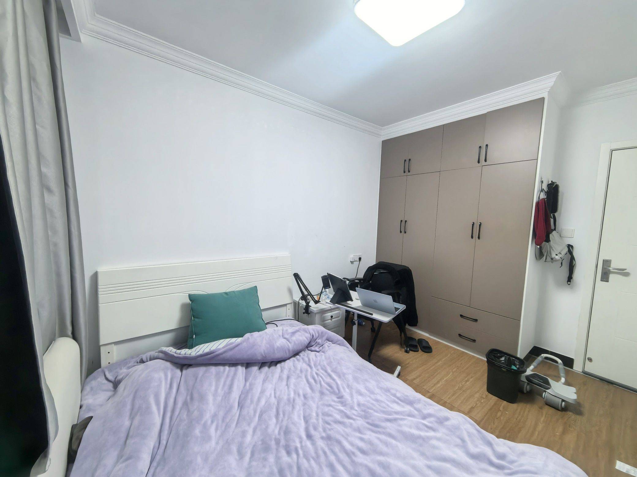 可月底搬进来,房子是附近最新的小区,三间卧室,这个是次卧,衣柜特别大,对衣服多的朋友特别友好。无客厅,共享厨房。