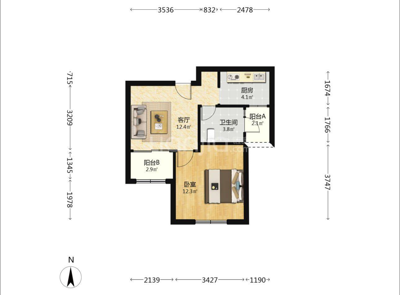 Rent : 2800RMB/M
