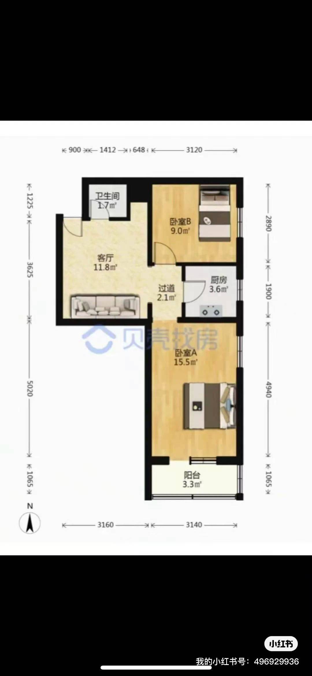 租金:无中介费,每月2500