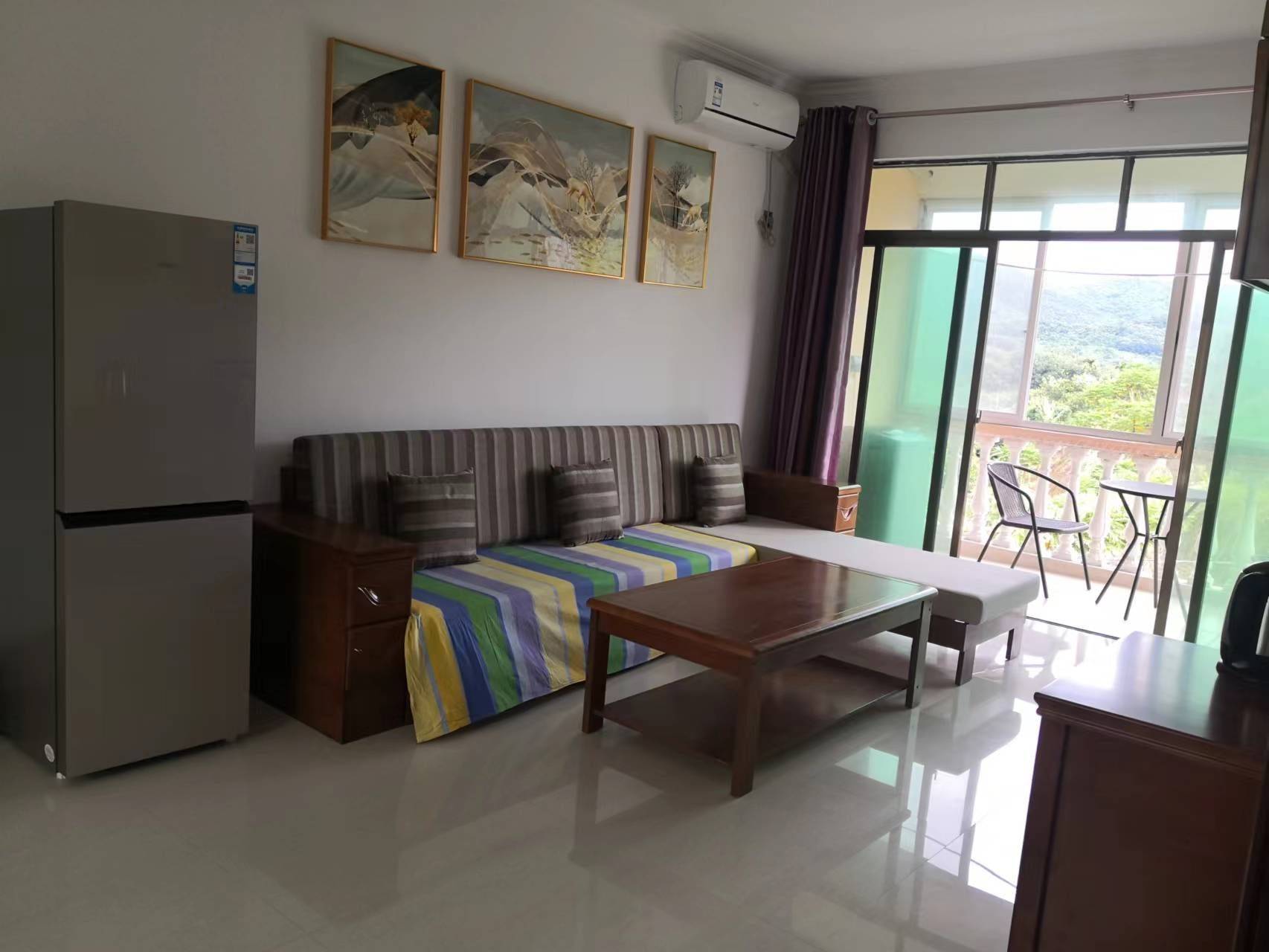 海南省三亚市天涯区南岛农场海鸥小区,距离三亚抱龙国家森林公园10公里,离市区海边18公里,小区环境优美,椰树成荫,小区周边芒果、木瓜、榴莲、菠萝蜜、香蕉等各种果林包围,是一片天然氧吧。房东直租无中介费,两室一厅一厨一卫,楼三层半,顶层130平方米带露台(室内80平方米带阳台,室外露台50平方米),租期可1年或1个月或2个月,租期1年一共12000元(1000元/月);租期1个月2500元;租期2个月一共4500元。露台适合露天聚餐或其他活动;小区有免费停车场,可供租车旅游或有私车的租客停放车辆。主卧、客厅均为阳面,配有电视、空调、冰箱、全自动洗衣机、燃气灶、太阳能热水器卫浴,无线网络wifi,家具齐全,民水民电。小区每天上午有百货用品(包括肉、鱼、蔬菜、日用品等)送货车上小区服务。 公交车坐天涯1路到南岛农场海鸥队。租车旅游或私车小区内有停车场,免费停车。 欢迎租客入住,可提前预定!