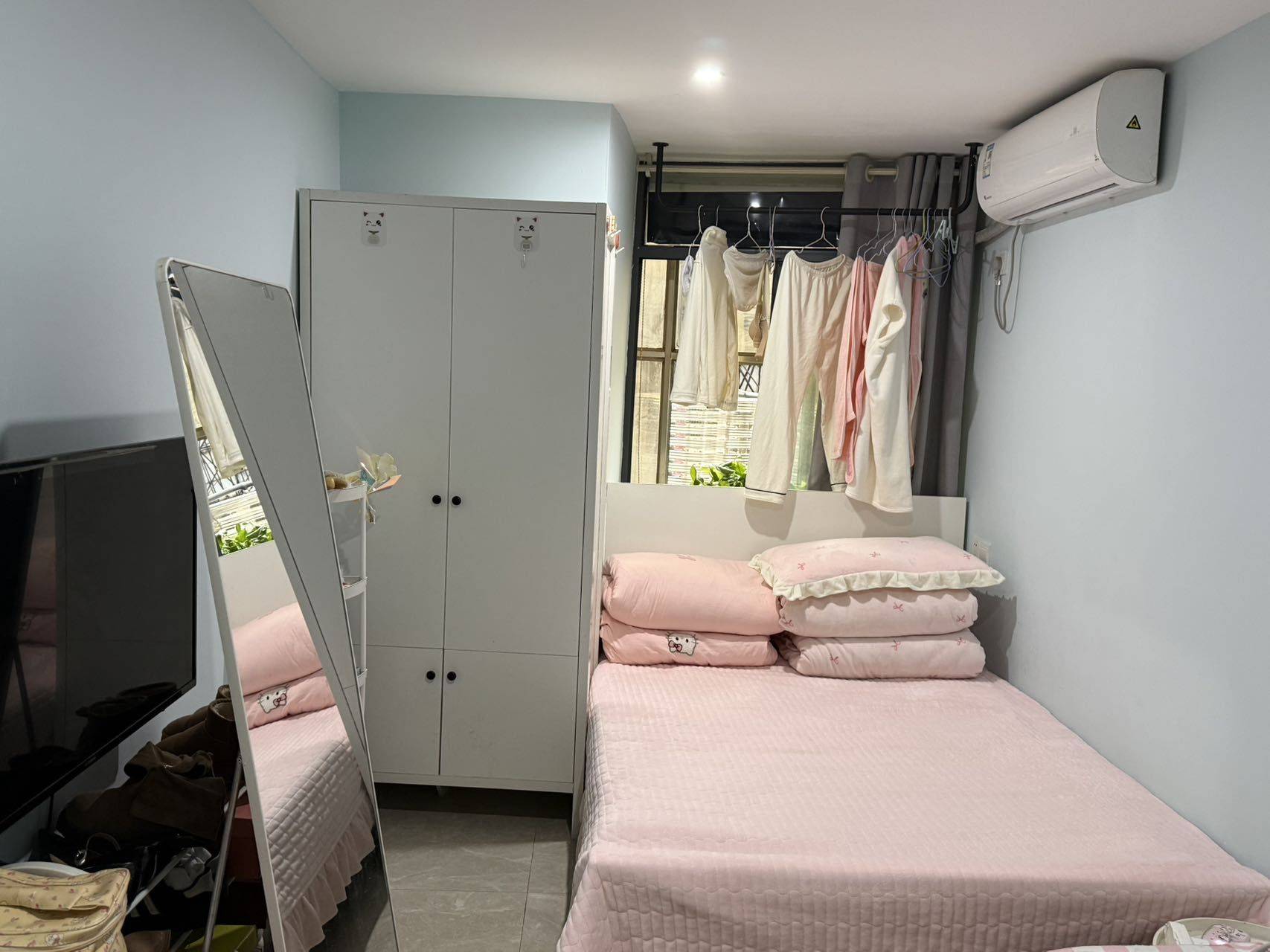 本人在此住了一年左右因为工作变动需要转租出去 有需要的小伙伴可以联系我哦 鞋架 大镜子 凳子什么的都可以免费送给你哟 年初需要的话也可以哟 包物业 包wifi 公寓型
