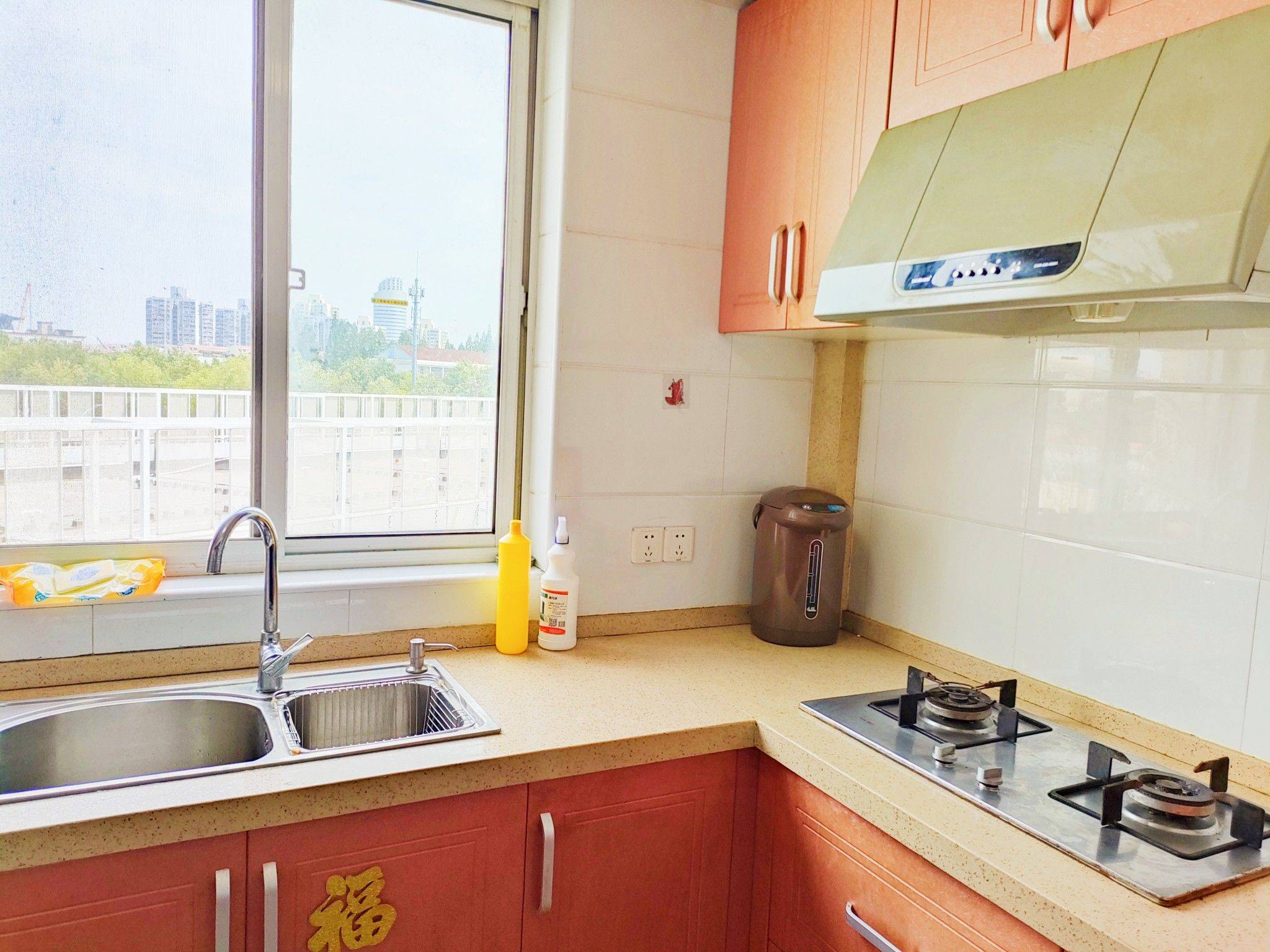 浦东金桥,5楼56平一室一厅一卫一书厅,南北通透敞亮户型,自住精装修全配,装修干净不显旧,还有一个宽敞的开放式书房和1.8米大书架办公桌台。民水民电,论面积、装修、户型、位置,是同小区中少有的好,正对小区中心绿地,前后光线无遮挡。交通便利,离6号线博兴路地铁站步行10分钟,周围有菜场、超市、医院、公交站、沿河绿地,生活便利。小区无停车位,车子可以停在小区外路边。季付,押一付三,一年起租。原房东直租。