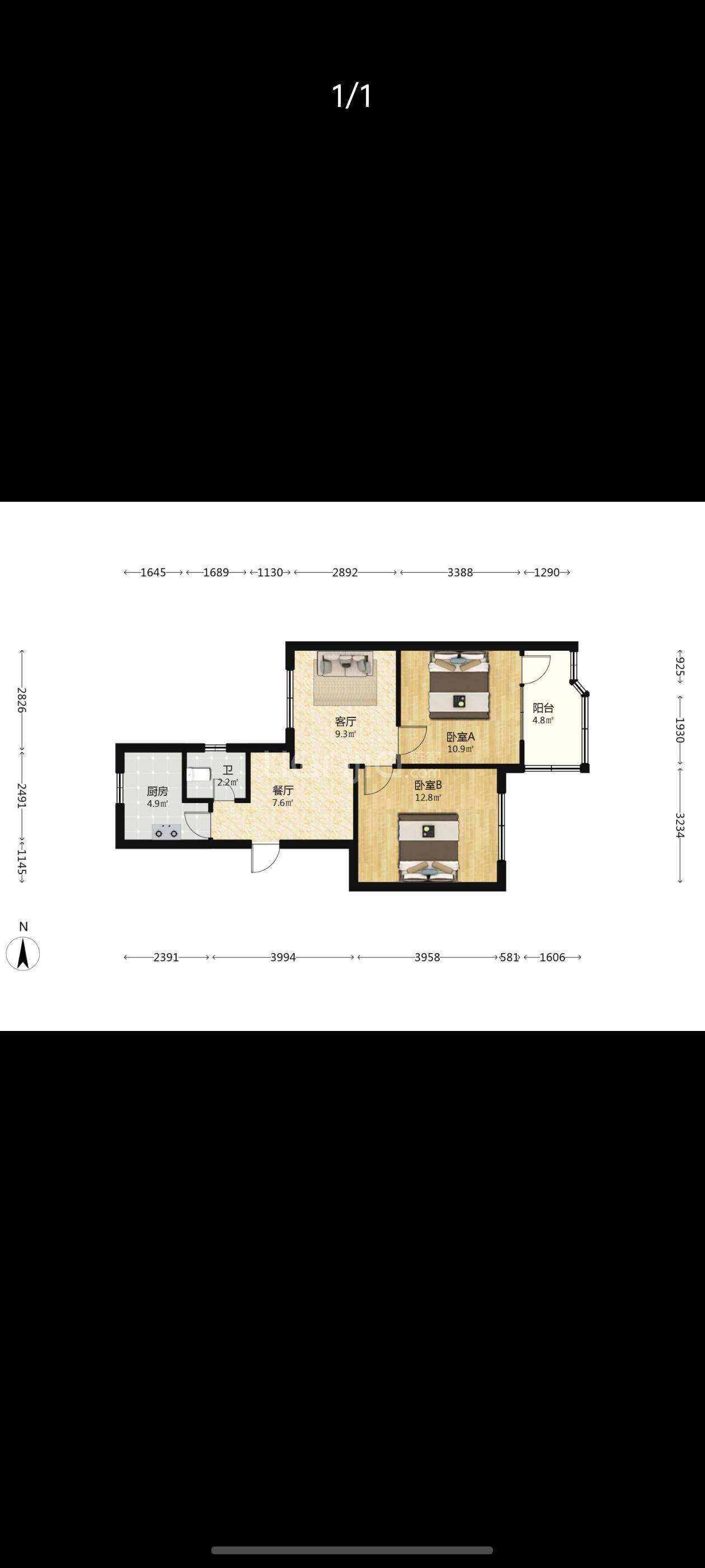 Rent : 1200RMB/M