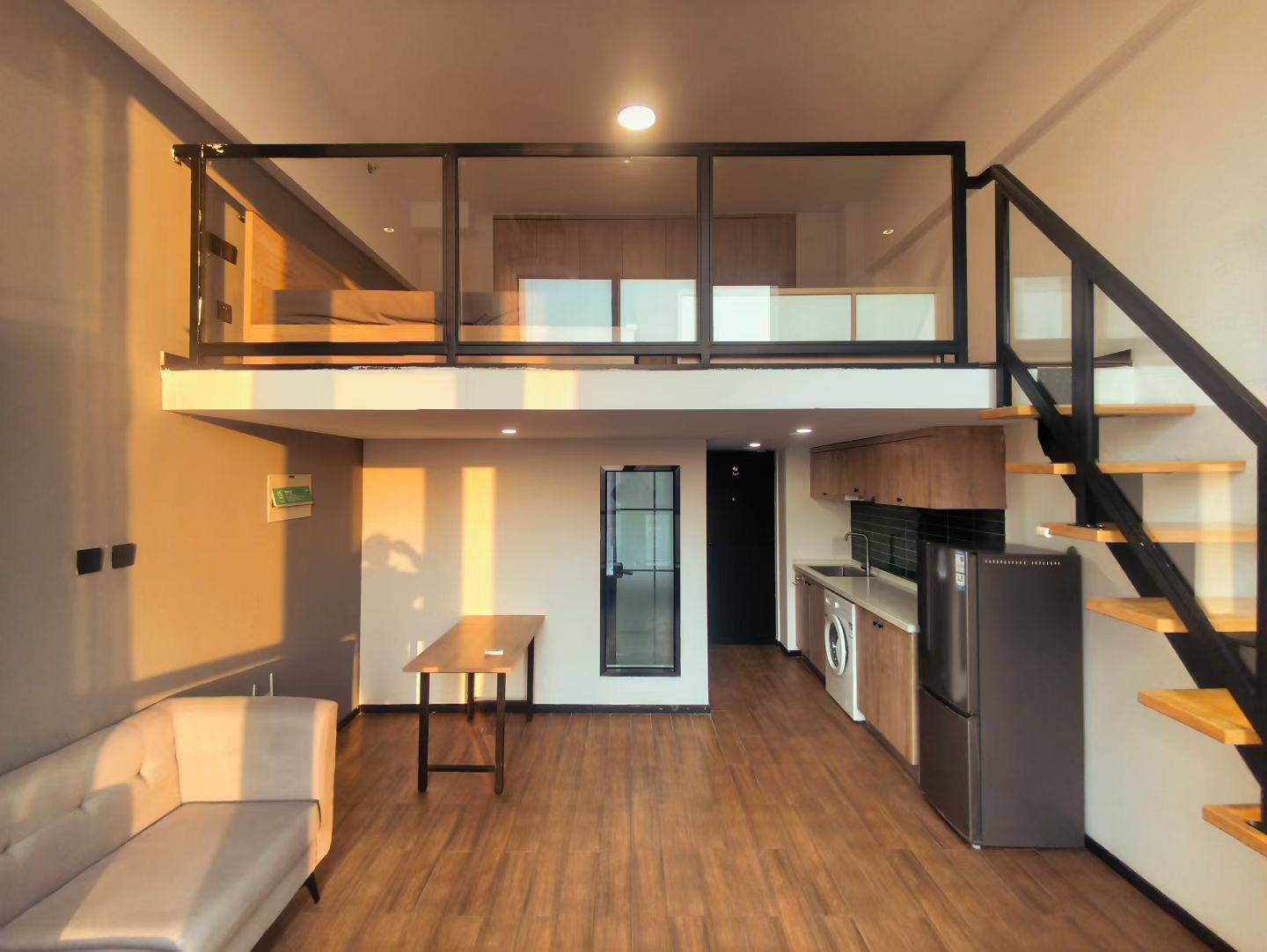 〖个人转租(后期可自行联系管家签合同续租,目前合同还剩三个月)〗 佣金:无 位置:北京市朝阳区豆各庄乡柠檬晓生活国际公寓(黄厂二店) 户型:loft 小复式 上下二层 价格:3300元 押金方式:4100元 位于朝阳区,靠近7号线黄厂地铁站(地铁站对面就是公寓),交通便利,对面是大型商超,楼下有免费的健身房、台球桌和休息室还有食堂。
