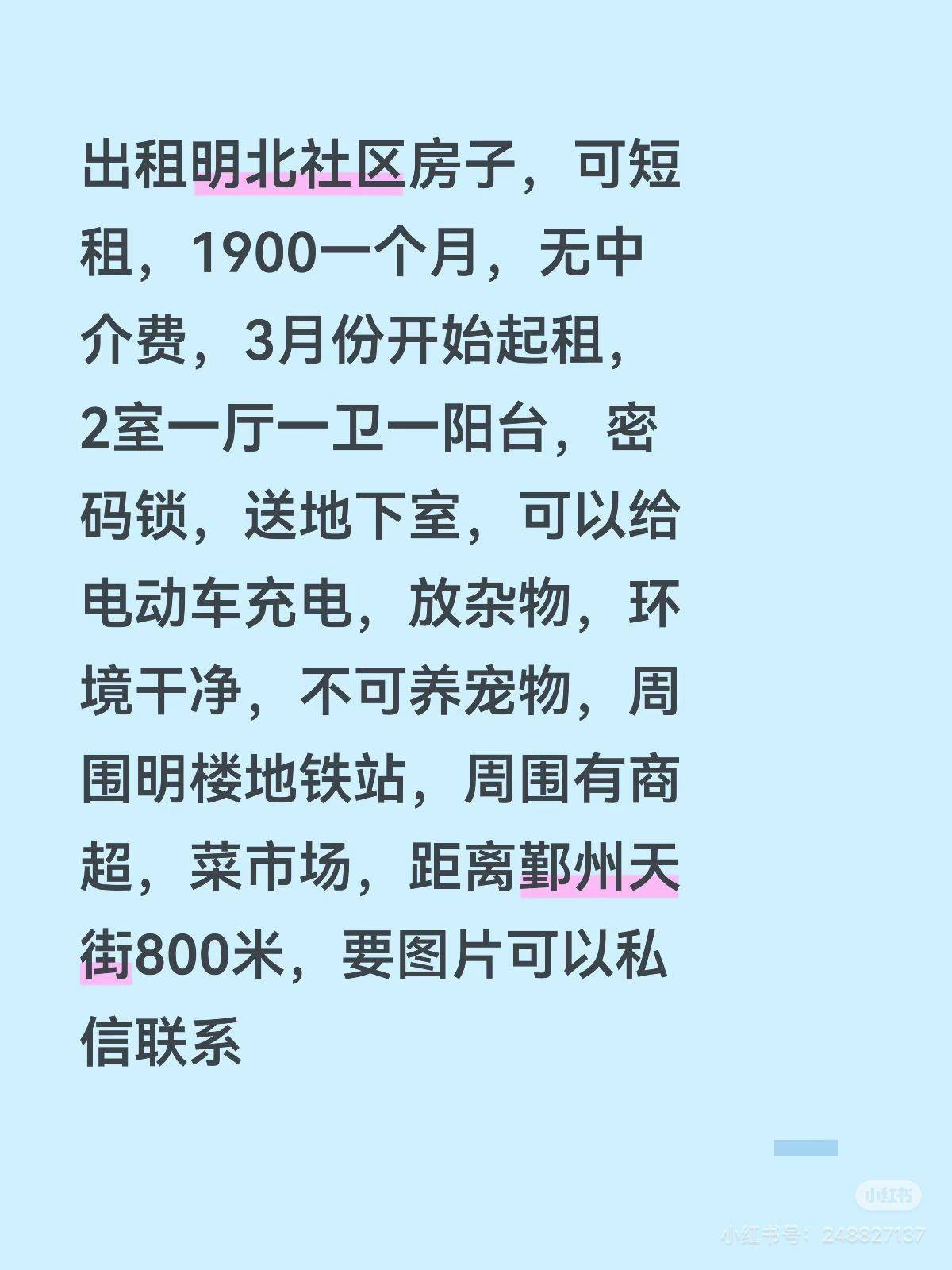Rent : 1900RMB/M
